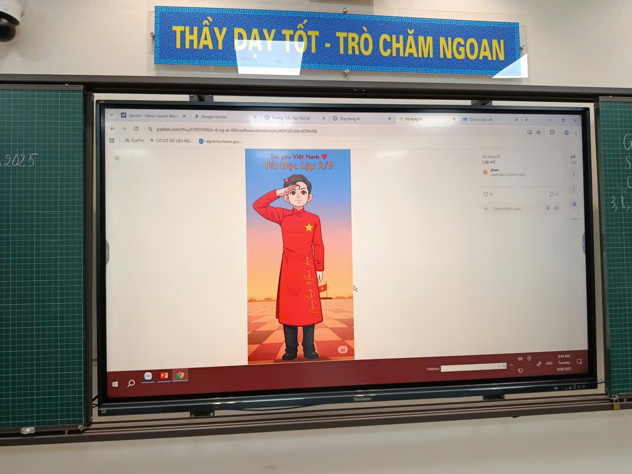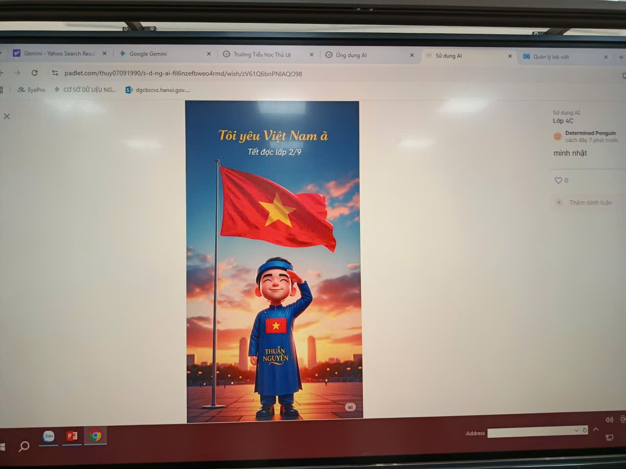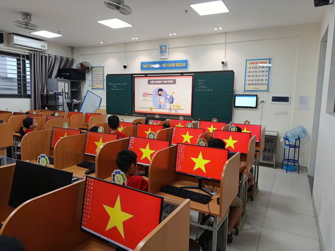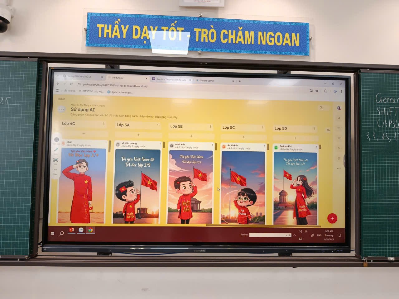 Hòa chung không khí hân hoan ấy, thầy và trò bộ môn Tin học – Trường Tiểu học Thủ Lệ đã và đang tổ chức nhiều hoạt động sôi nổi, sáng tạo, mang đậm dấu ấn của tuổi trẻ trong thời đại số như sử dụng ứng dụng AI với gemini để thiết kế poster, infographic, banner điện tử với sắc đỏ sao vàng rực rỡ, gửi gắm niềm tự hào dân tộc.