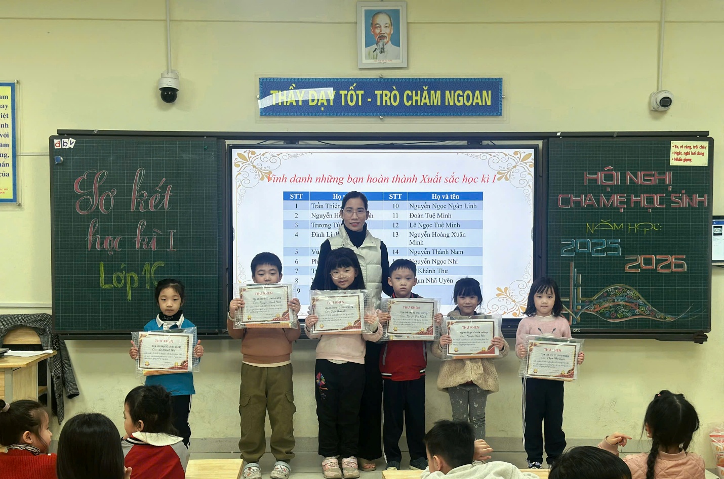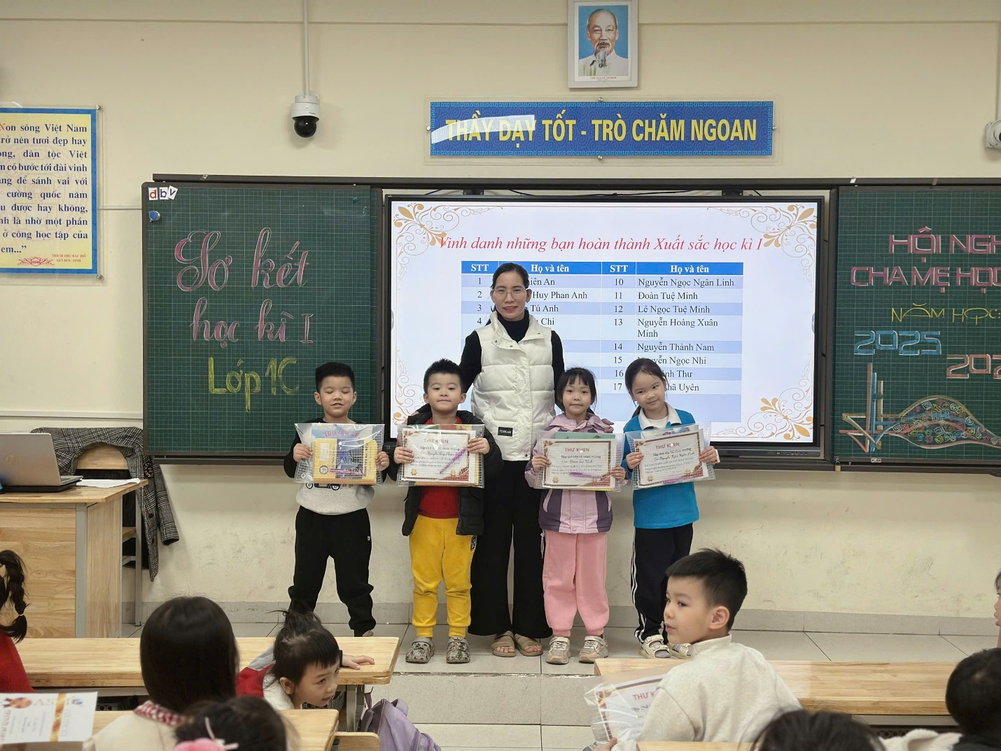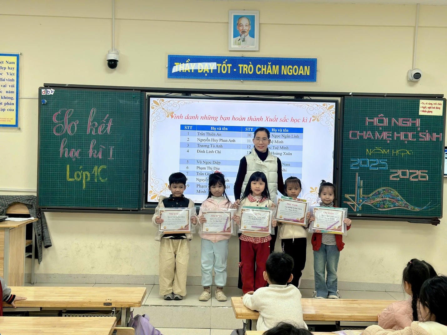 Buổi sơ kết học kì I diễn ra trong không khí ấm áp, vui tươi và đầy tự hào. Đây không chỉ là dịp để thầy cô nhìn lại chặng đường học tập đầu tiên của các con, mà còn là khoảnh khắc ý nghĩa để tuyên dương những học sinh lớp 1C đã hoàn thành tốt tất cả các môn học.