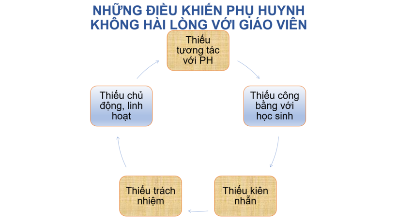 Theo Tiến sĩ Nguyễn Thị Hường: “Phụ huynh là cha mẹ của học sinh, chịu trách nhiệm nuôi nấng, dạy dỗ học sinh. Thành công của học sinh là thước đo cho sự thành công của cha mẹ.” Niềm vui gắn với thành công của con, vậy nhưng khi con em có những thành tích không tốt, phụ huynh lại có xu hướng ít nhận trách nhiệm về bản thân mình và thường đổ lỗi cho thầy cô giáo. Nếu không tạo được sự tin tưởng, sẻ chia với phụ huynh, việc tương tác, trao đổi giữa gia đình - nhà trường sẽ ngày càng gặp khó khăn.