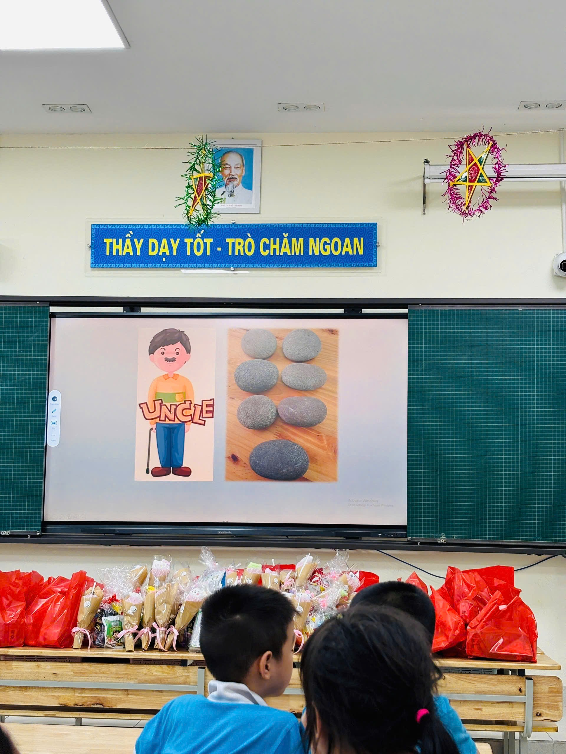 Không khí càng thêm sôi động khi lớp tổ chức trò chơi "Đuổi hình bắt chữ" phiên bản Trung Thu. Với các hình ảnh gần gũi như: bánh nướng, chị Hằng, chú Cuội, lồng đèn, mâm ngũ quả…, các đội thi hào hứng tranh tài. Tiếng cười, tiếng reo hò cổ vũ vang khắp lớp học. Các con thể hiện sự nhanh nhạy, hợp tác và sáng tạo khi cùng nhau giải đố, mang lại những phút giây vui vẻ và bổ ích.
