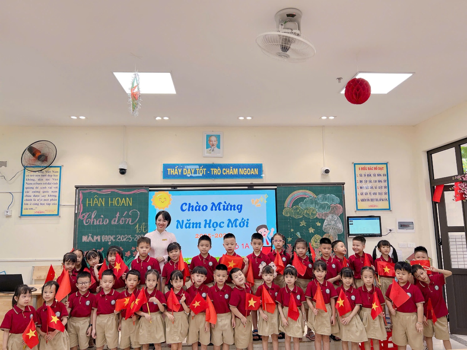 Thầy và trò lớp 1A hân hoan chào đón năm học mới.
