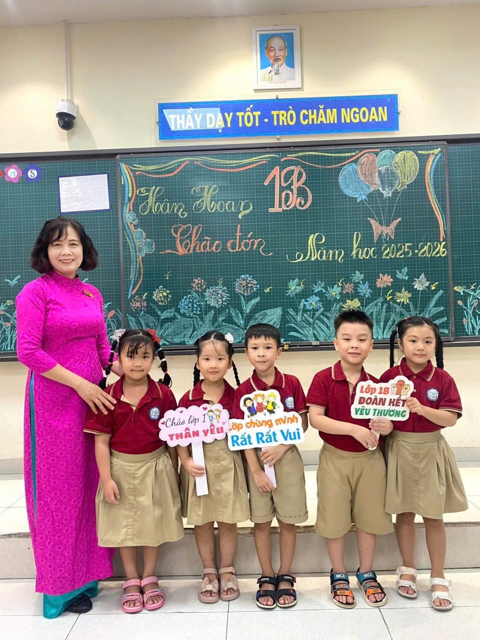 Thầy và trò lớp 1B vui mừng chào đón năm học mới.