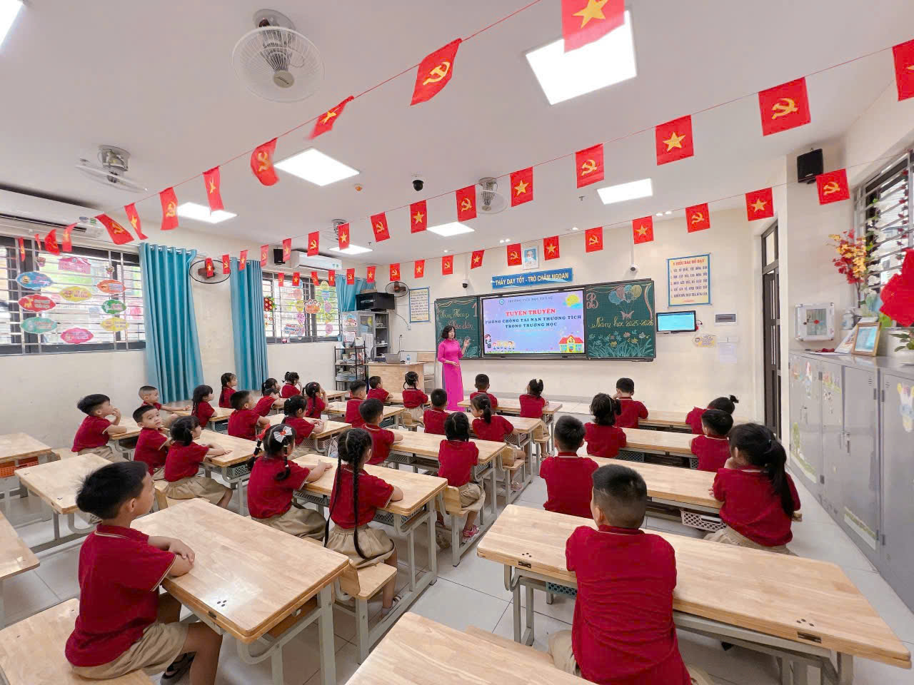 Đối với các em học sinh lớp 1, đây là buổi lễ khai giảng đầu tiên trong hành trình học tập. Với ánh mắt trong veo và nụ cười hồn nhiên, các em đã được thầy cô, cha mẹ và anh chị khối trên nồng nhiệt chào đón. Tiếng trống khai trường rộn rã vang lên như mở ra cánh cửa tri thức, khởi đầu cho một năm học đầy hứa hẹn.