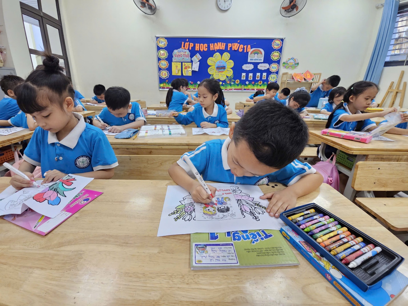 Hòa trong không khí ấy, thầy và trò lớp 1A trường Tiểu học Thủ Lệ đã tổ chức nhiều hoạt động ý nghĩa và sôi nổi. Các em học sinh háo hức tham gia làm thiệp, gấp hoa giấy, viết lời chúc tặng mẹ và cô giáo để gửi lời tri ân tới “một nửa yêu thương” của thế giới. Những tấm thiệp đầy màu sắc, những nụ cười rạng rỡ đã tạo nên bầu không khí vui tươi, ấm áp trong tập thể lớp.