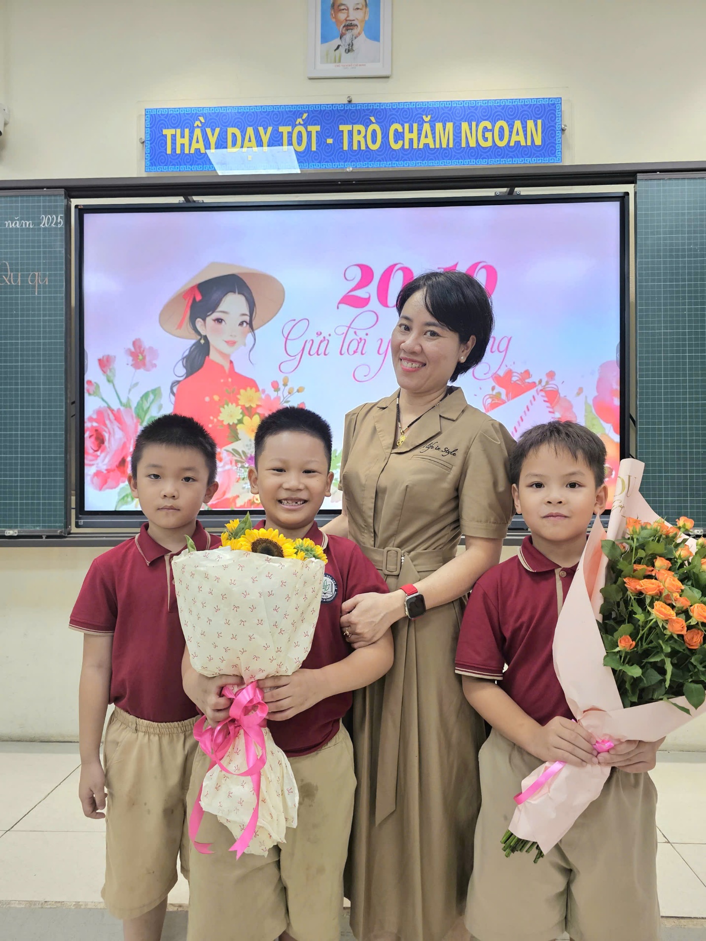 Học sinh lớp 1A chúc mừng cô giáo của mình nhân ngày Phụ nữ Việt Nam.