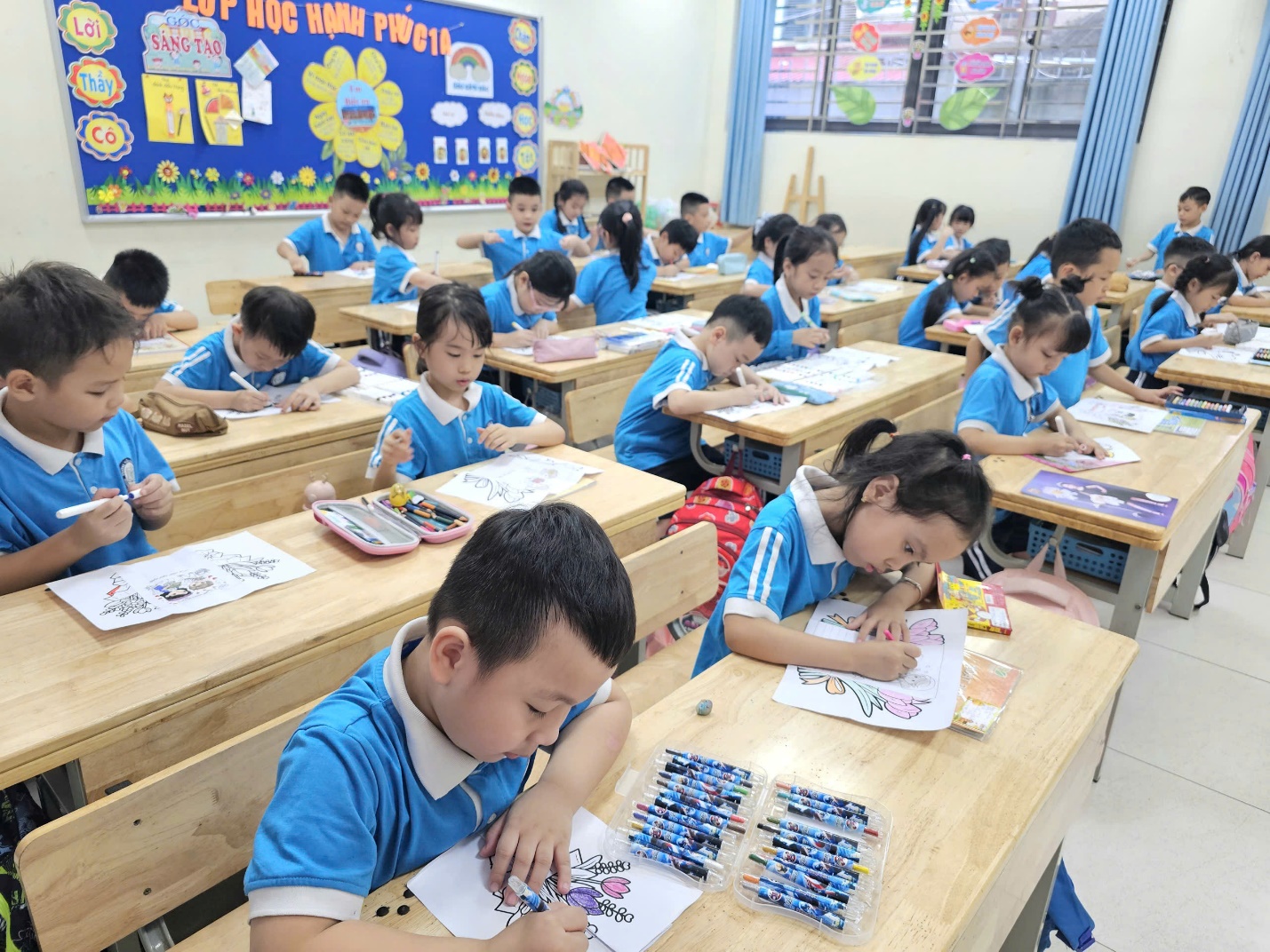 Các bạn học sinh lớp 1A với hoạt động làm thiệp chúc mừng ngày 20/10.