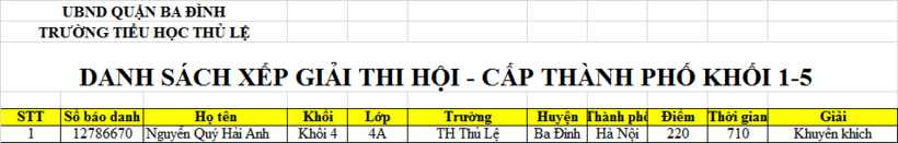 Ban tổ chức cuộc thi Trạng nguyên Tiếng Việt Trường Tiểu học Thủ Lệ trân trọng thông báo kết quả vòng thi Hương của các sĩ tử khối 4: