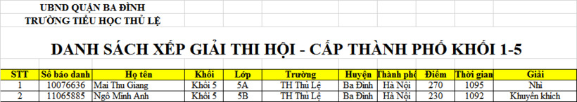 Ban tổ chức cuộc thi Trạng nguyên Tiếng Việt Trường Tiểu học Thủ Lệ trân trọng thông báo kết quả vòng thi Hương của các sĩ tử khối 5:
