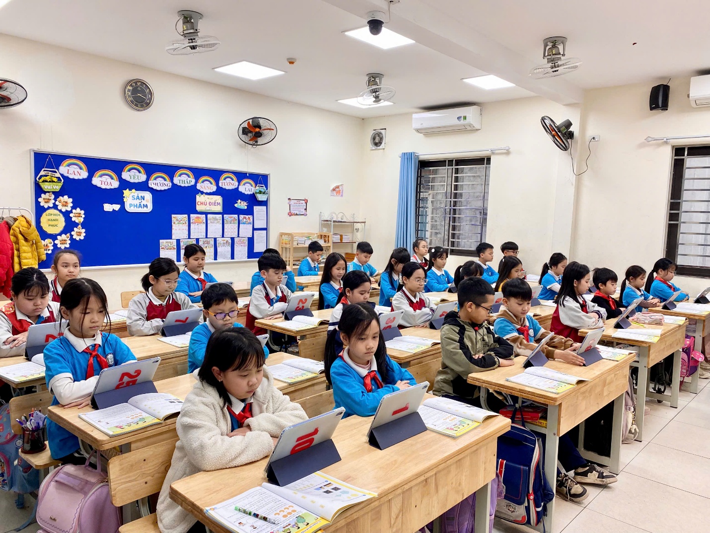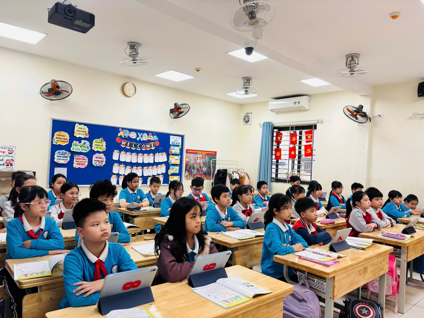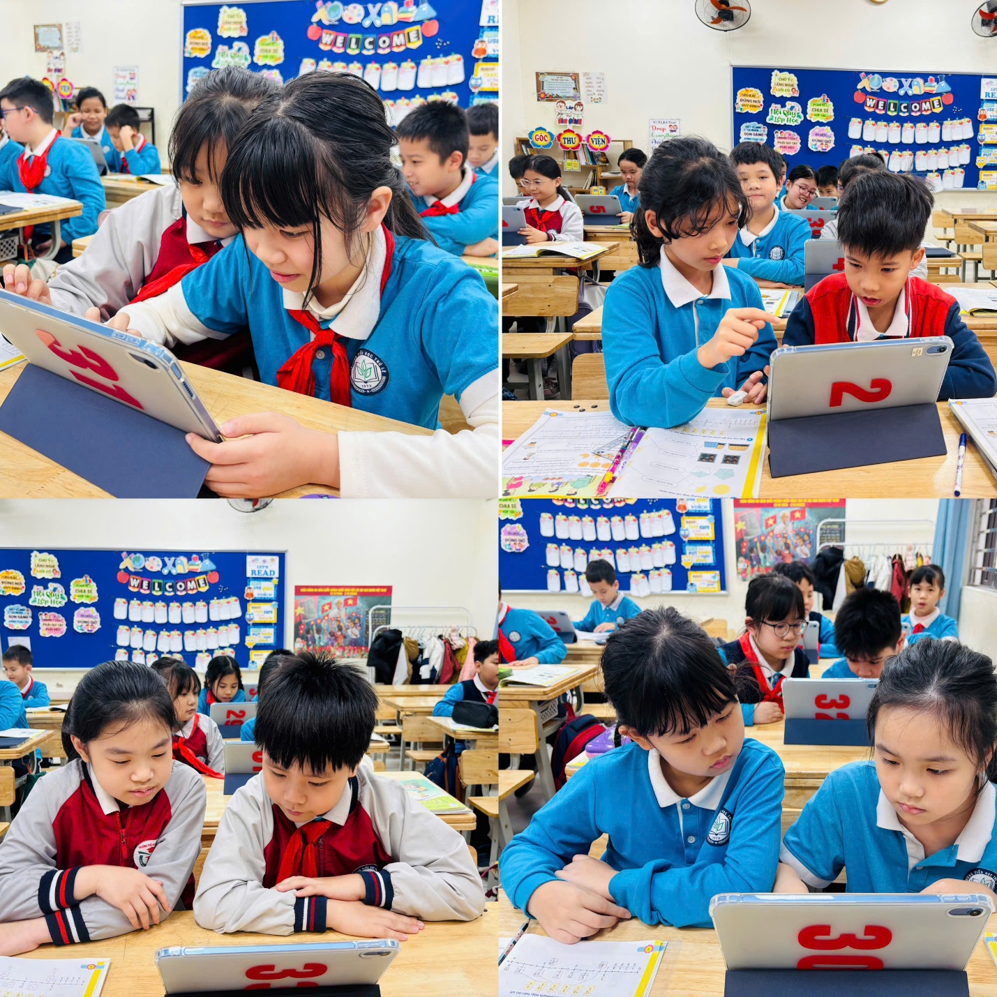 Tiết học Toán với iPad đầy hứng thú của học sinh Khối 4 trường Tiểu học Thủ Lệ