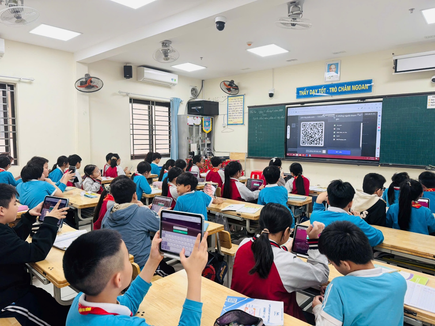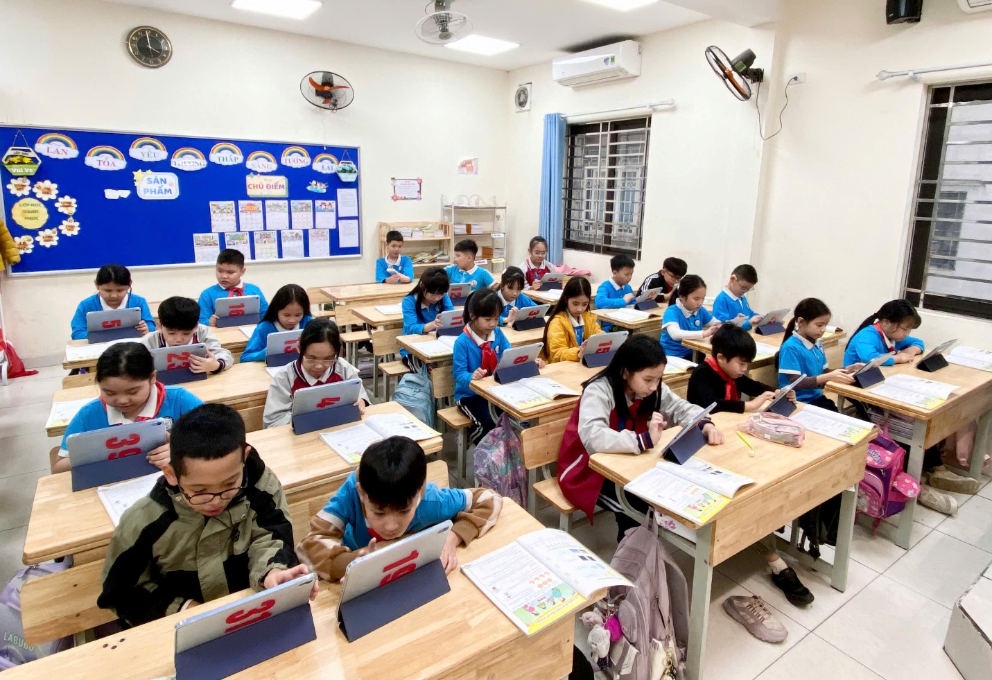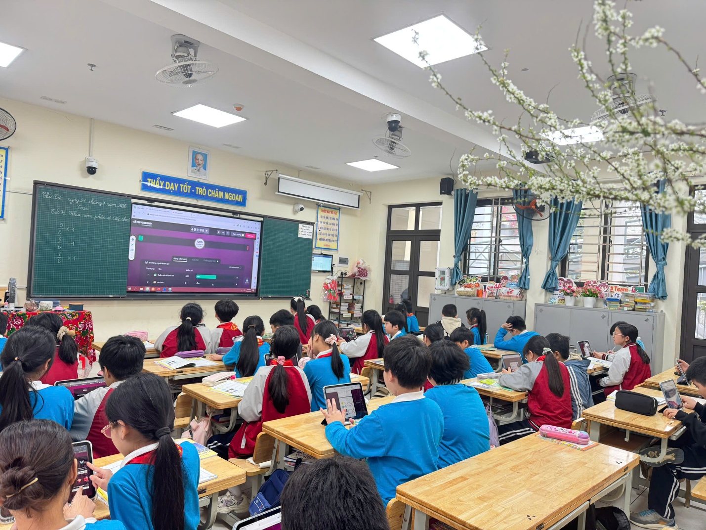 Tiết học Toán với iPad đầy hứng thú của học sinh Khối 4 trường Tiểu học Thủ Lệ