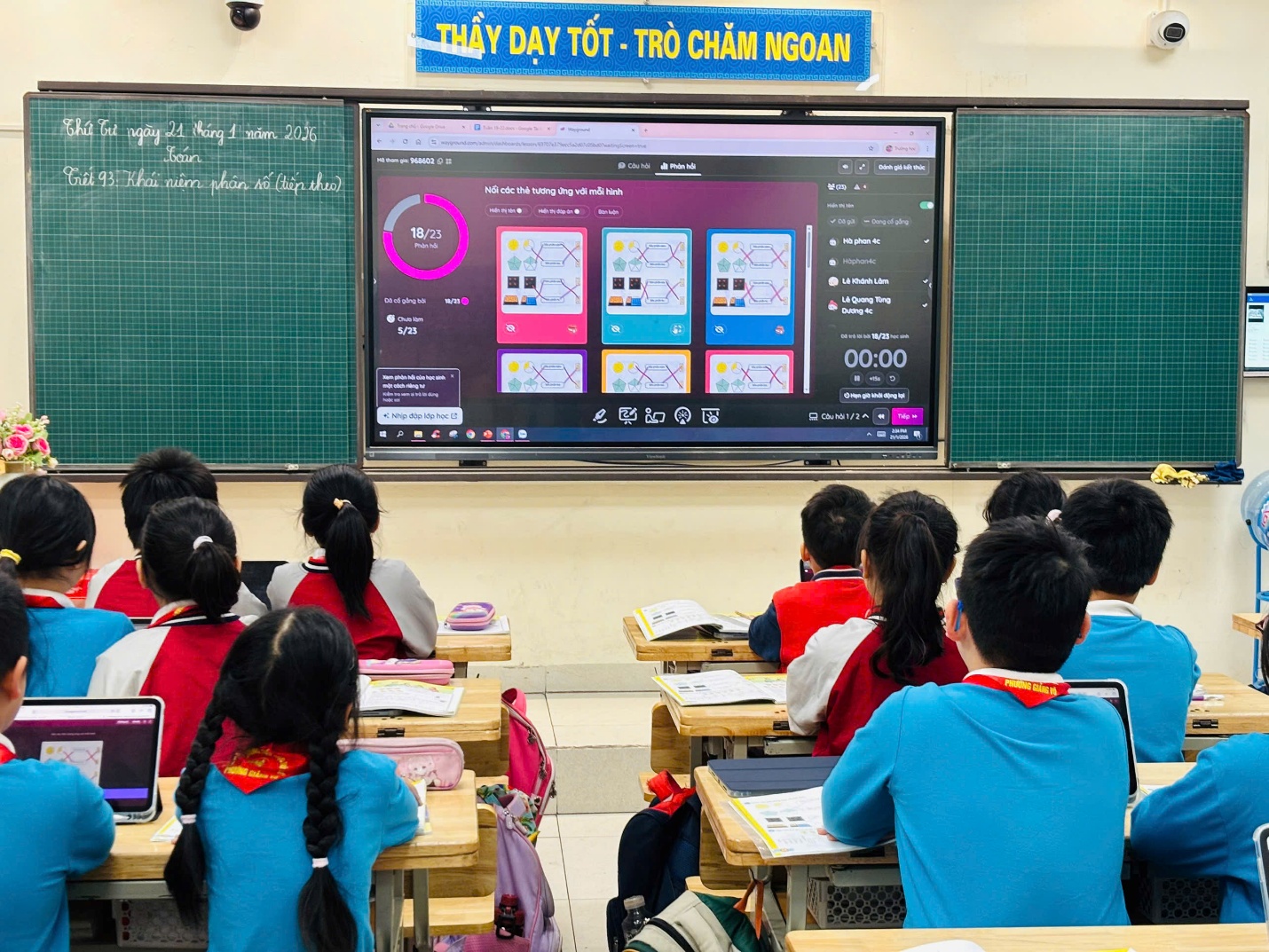 Kết thúc tiết học, điều đọng lại không chỉ là kiến thức về phân số, mà còn là niềm vui học tập: các con thấy Toán gần gũi, dễ tiếp cận hơn; giáo viên cũng dễ quan sát tiến độ và hỗ trợ kịp thời. Những tiếng “Con làm được rồi!”, “Cho con làm thêm câu nữa!” chính là minh chứng rõ nhất cho một tiết học hiệu quả – nhẹ nhàng mà đầy hứng khởi, đúng tinh thần học chủ động với công cụ số của học sinh Tiểu học Thủ Lệ.