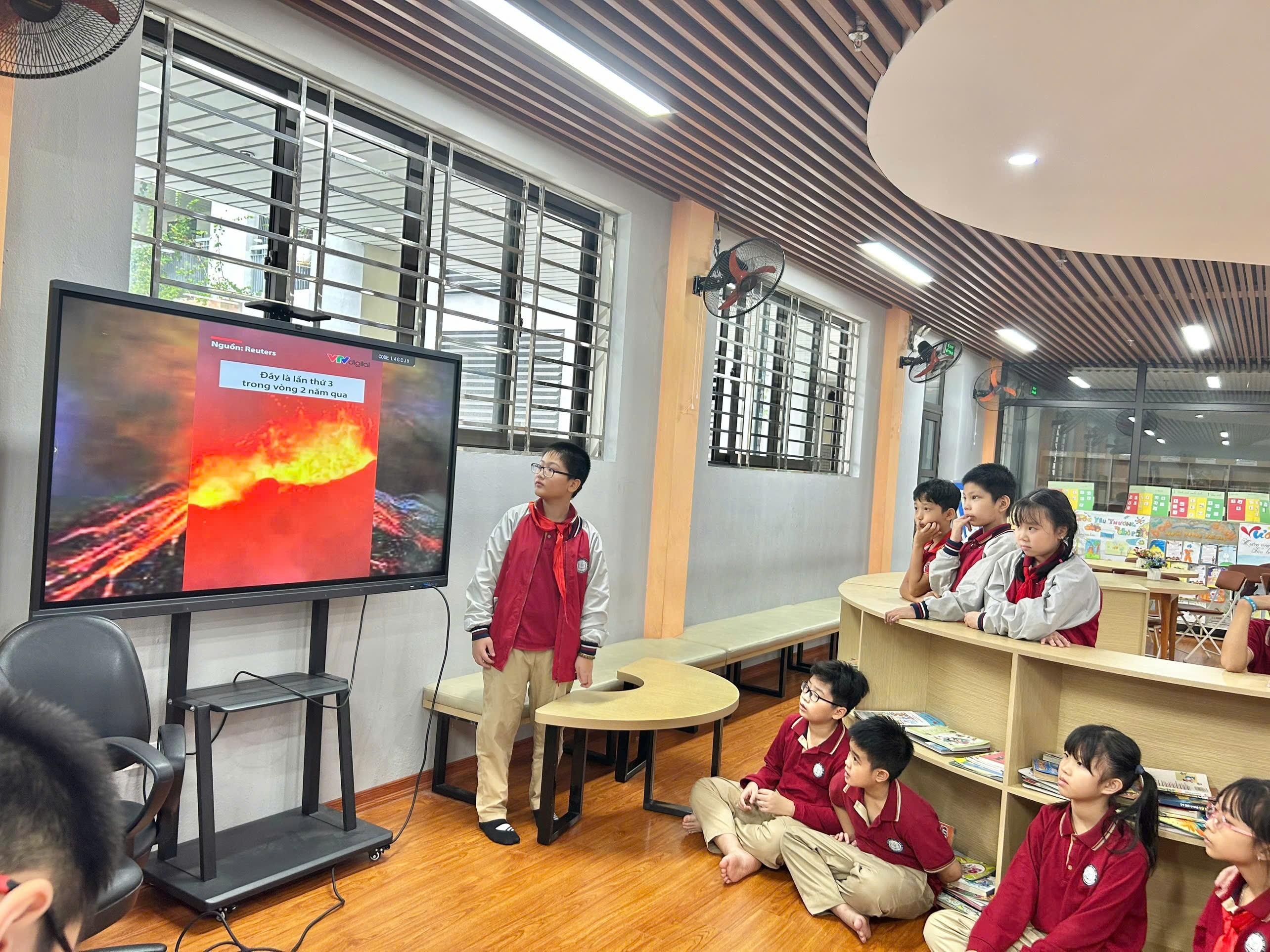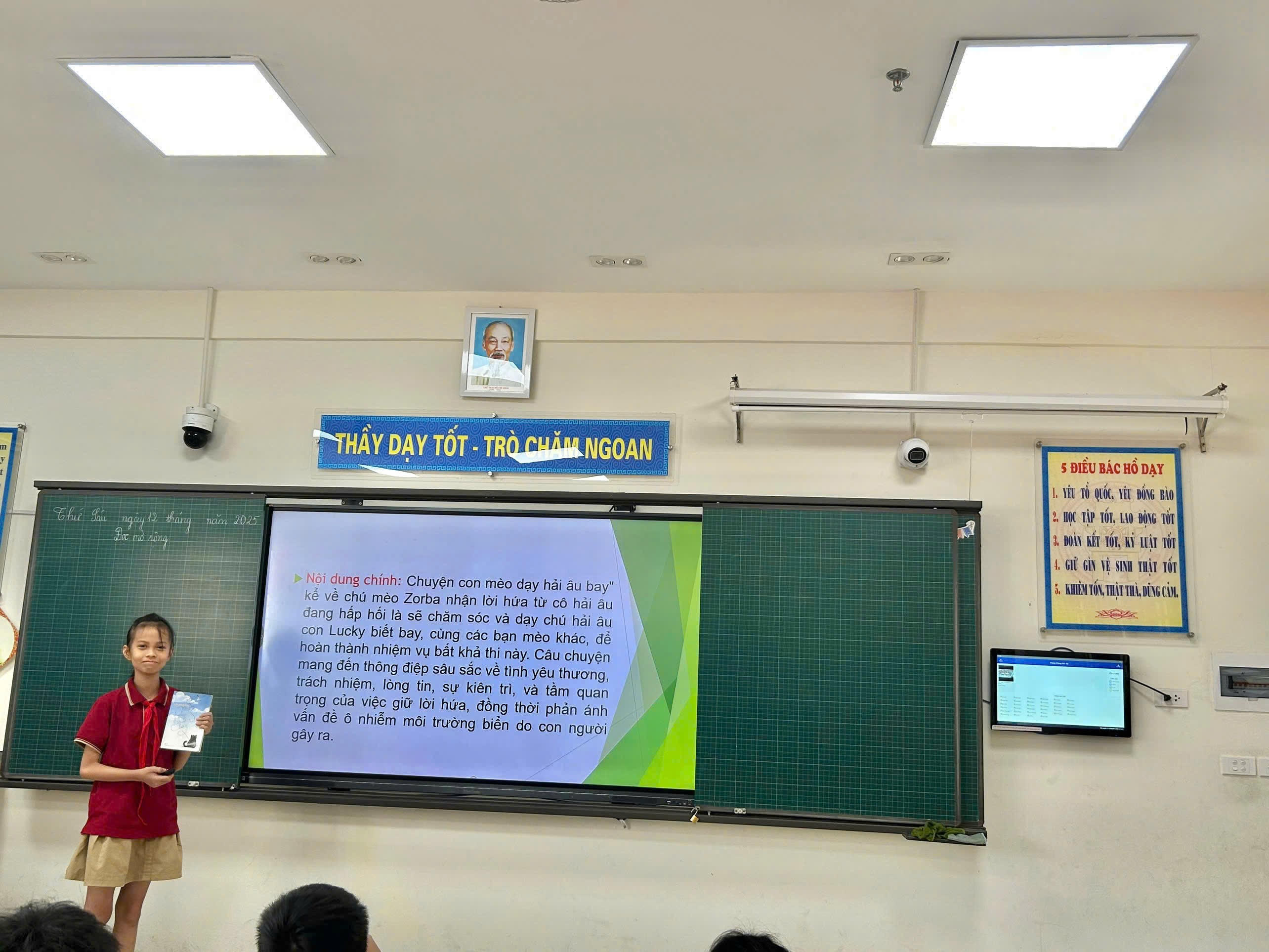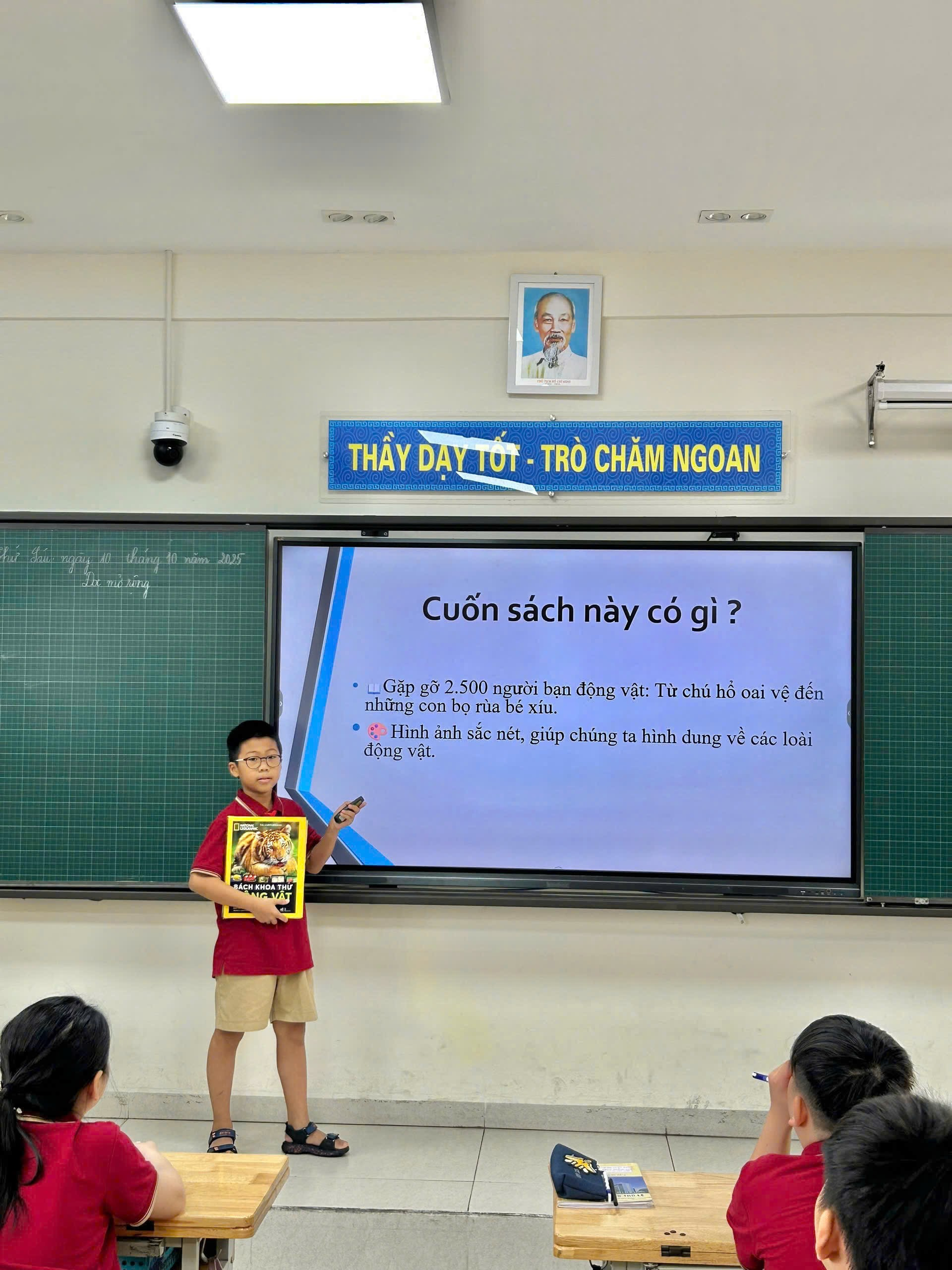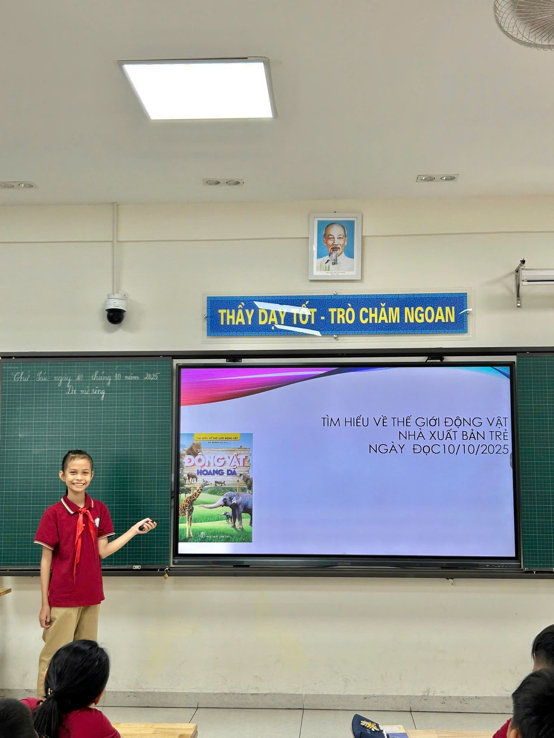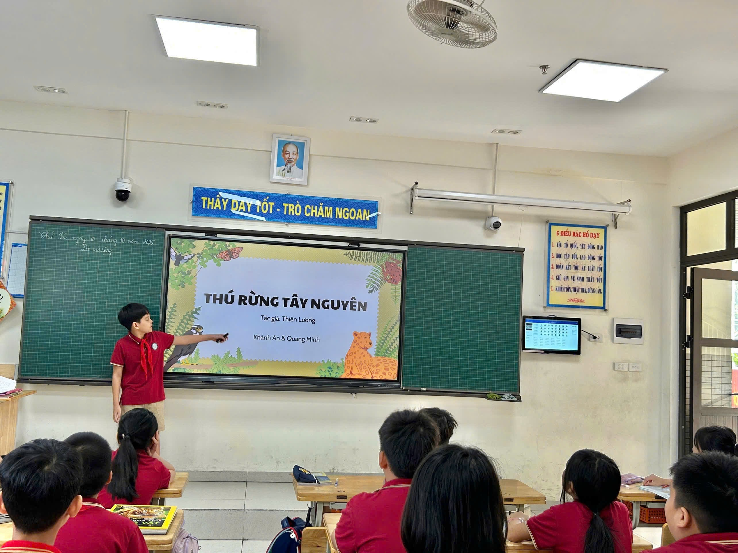 Đọc mở rộng thú vị ở chỗ nó giúp các bạn học sinh tiếp thu kiến thức, phát triển kỹ năng ngôn ngữ một cách tự nhiên và giảm căng thẳng. Thay vì phân tích sâu từng từ, từng bài đọc, đọc mở rộng giúp các bạn tập trung vào việc thưởng thức câu chuyện, mỗi học sinh được thoải mái tiếp nhận từ vựng mới và ngữ pháp trong ngữ cảnh thực tế. Điều này biến việc đọc thành một trải nghiệm thư giãn nhưng hiệu quả để mở rộng vốn từ và củng cố kiến thức đã học. Mỗi tuần sẽ có từng chủ đề cho từng tiết Đọc mở rộng, cô giáo khuyến khích các bạn học sinh về nhà đọc sách, tìm kiếm thông tin của cuốn sách từ Internet phục vụ cho chủ đề của bài học, sau đó được tự thiết kế video, hình ảnh trên phần mềm Canva, PowerPoint để giới thiệu về cuốn sách và những điều thú vị của cuốn sách mà mình đã đọc: Sau đây mời thầy cô và các bạn cùng xem lại những hình ảnh trong 7 tuần học vừa qua của cô trò lớp 5D nhé!