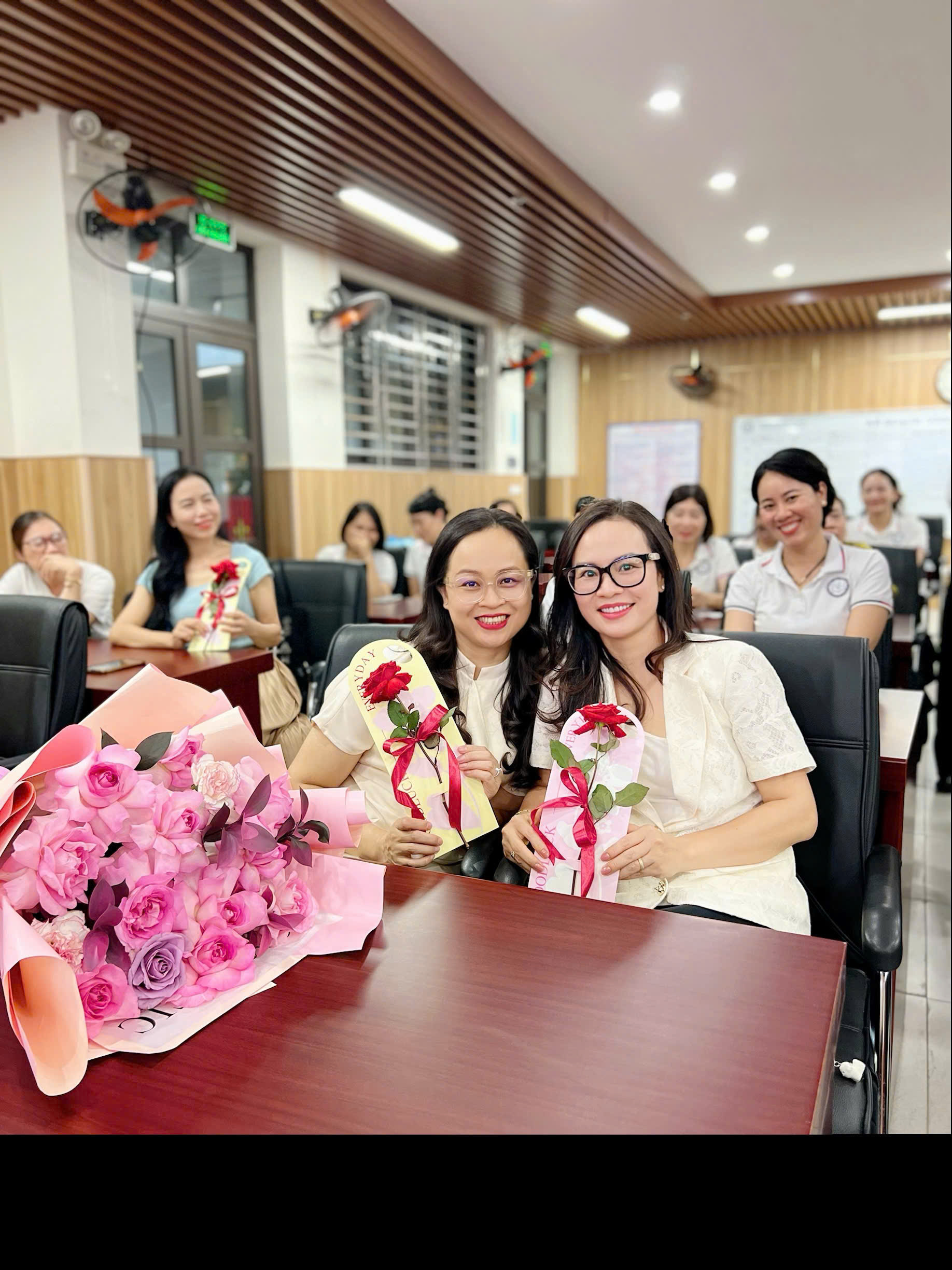 Tại buổi lễ, Ban Giám hiệu cùng Ban đời sống của nhà trường đã gửi những lời chúc chân thành cùng những bông hoa tươi thắm đến toàn thể chị em - những người phụ nữ không chỉ đảm đang trong cuộc sống, mà còn đầy bản lĩnh, sáng tạo và tận tâm trong công việc.
