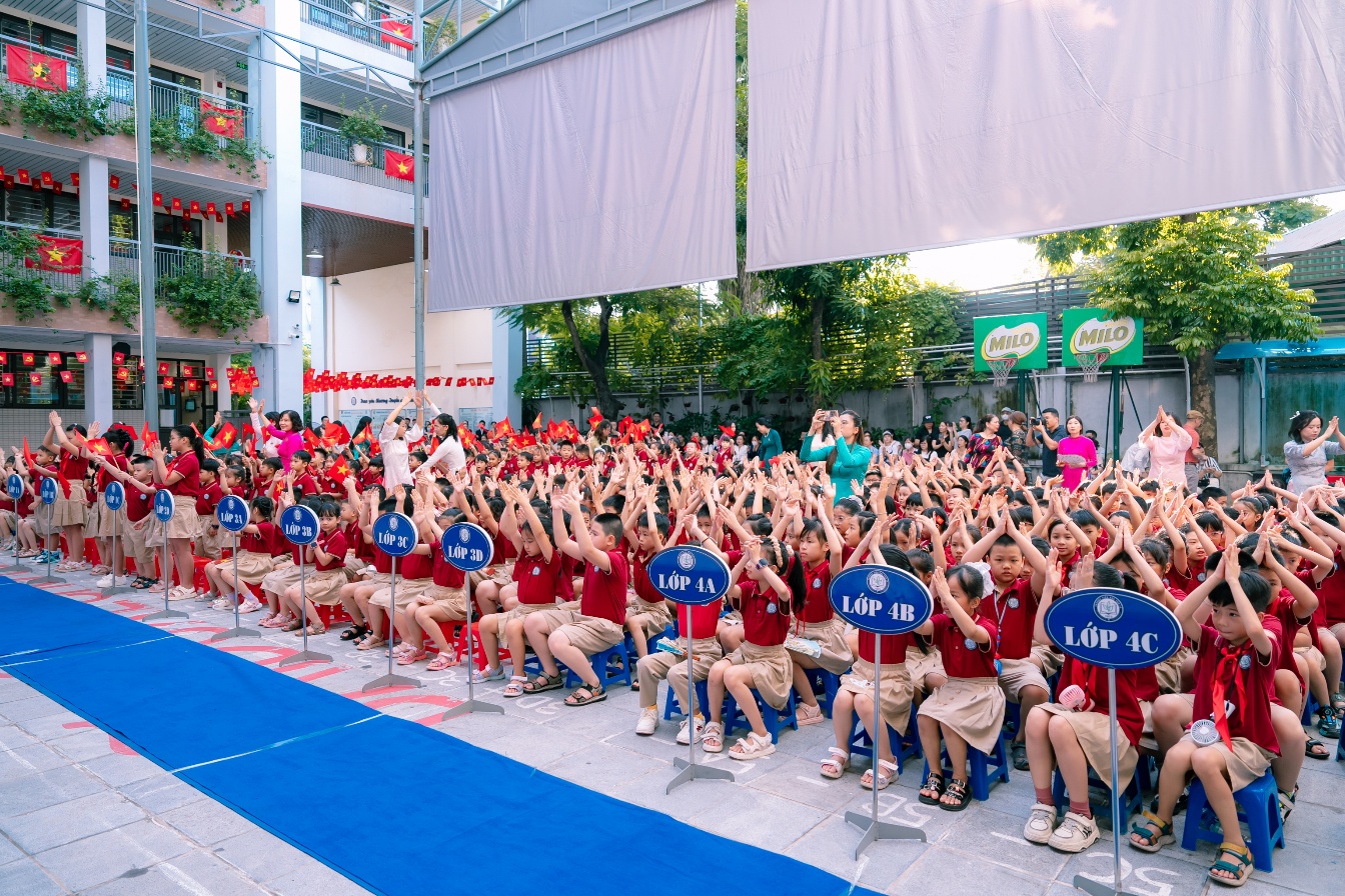 Buổi lễ diễn ra trang trọng với nghi thức chào cờ, hát Quốc ca và lời khai giảng đầy xúc động của cô Hiệu trưởng. Đặc biệt, tiếng trống khai trường vang lên giòn giã đã mở ra một năm học mới tràn đầy niềm tin và hi vọng.