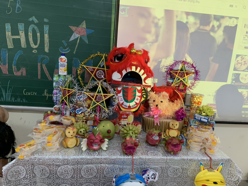 Cùng sự giúp đỡ của các thầy cô giáo và các bậc phụ huynh, các con đã trang trí mâm cỗ Trung thu đẹp mắt, thể hiện niềm vui và tính sáng tạo trong mỗi sản phẩm. Cùng với đó, các con học sinh còn được thể hiện những giọng ca và điệu múa của mình cho thầy cô giáo và bố mẹ thưởng thức. Có nhiều lớp giáo viên chủ nhiệm cùng các bậc phụ huynh tổ chức trò chơi với những câu đố có ý nghĩa về đêm hội trăng rằm, tổ chức sinh nhật cho các bạn sinh vào tháng 9, tặng quà cho các bạn có thành tích trong tuần đầu tiên của năm học. Được trao các phần quà ý nghĩa và vui liên hoan phá cỗ mừng ngày hội trăng rằm các con rất phấn khởi và hào hứng.