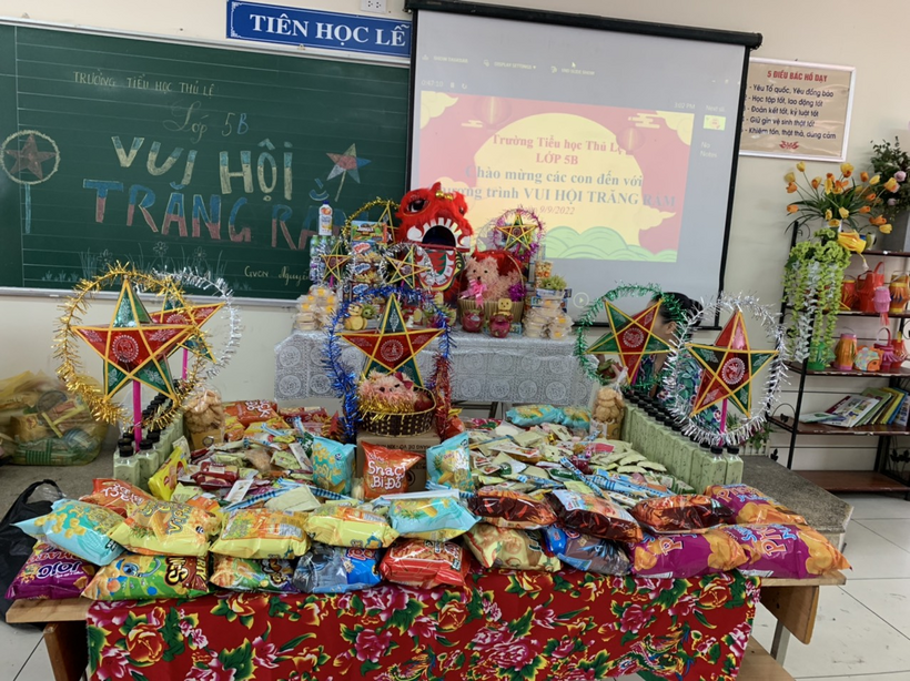 Cùng hòa chung với thiếu nhi cả nước chào đón Tết Trung thu, chiều 9/9/2022, học sinh khối 5 trường tiểu học Thủ Lệ tham gia chương trình “Vui Tết Trung thu” tại phòng học các lớp. Chỉ ngắn gọn trong một tiết sinh hoạt lớp, nhưng nhiều hoạt động ý nghĩa đã được các con học sinh, cô giáo và phụ huynh học sinh tổ chức, mang đến một không gian cổ tích cho các em với sự trưng bày mâm cỗ Trung thu ngay tại các lớp.