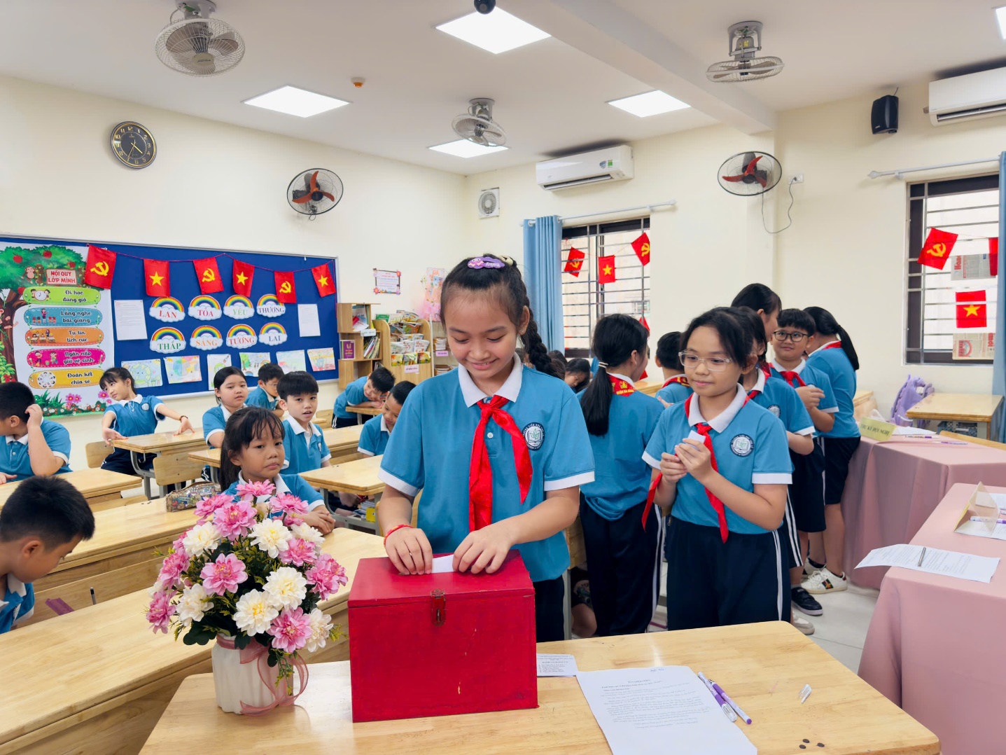 Các bạn đội viên tham gia bỏ phiếu