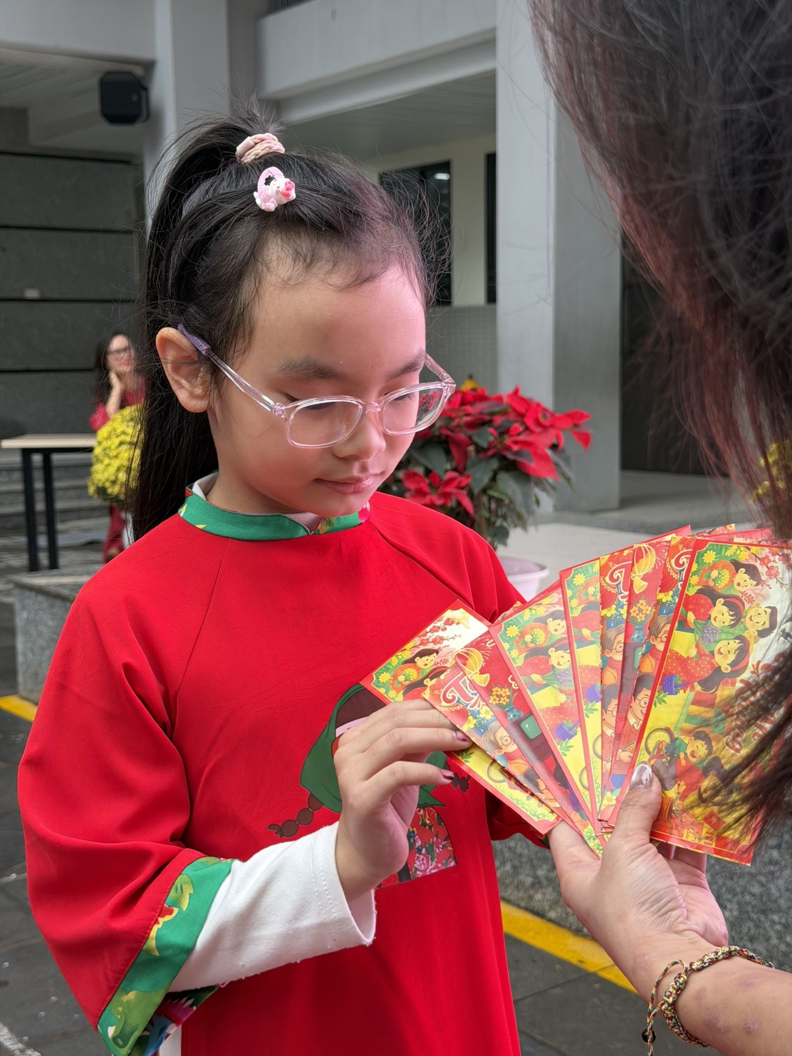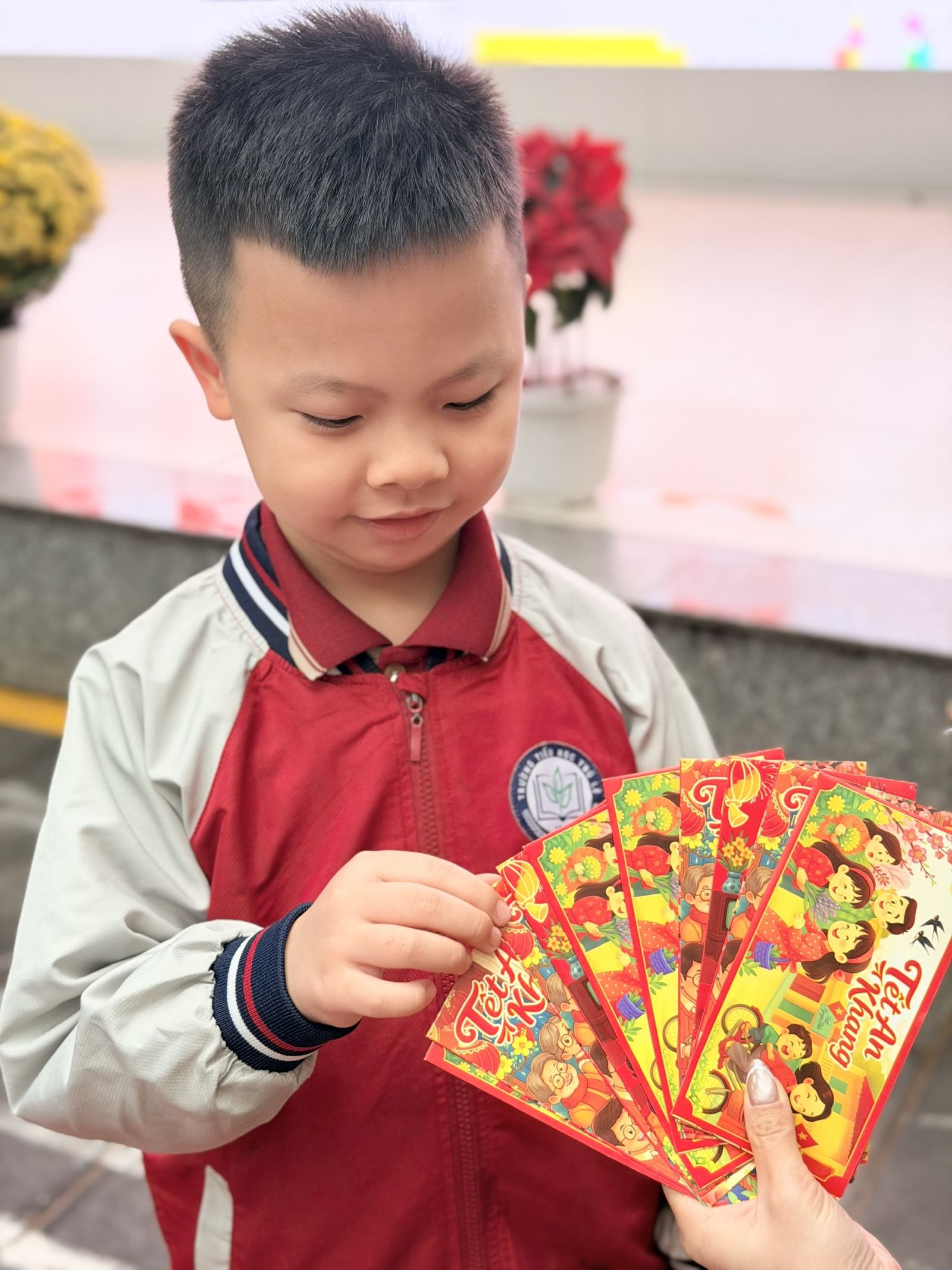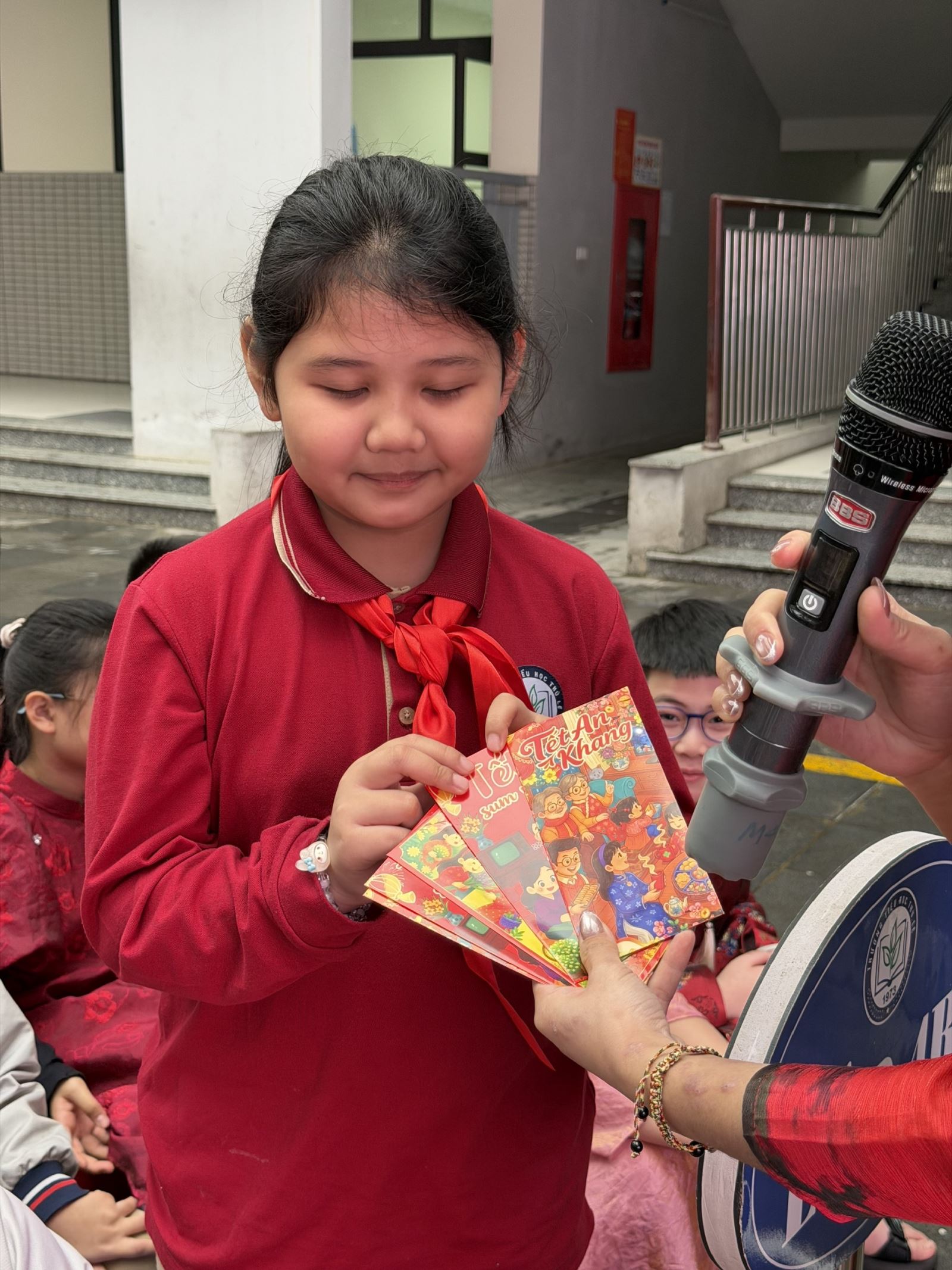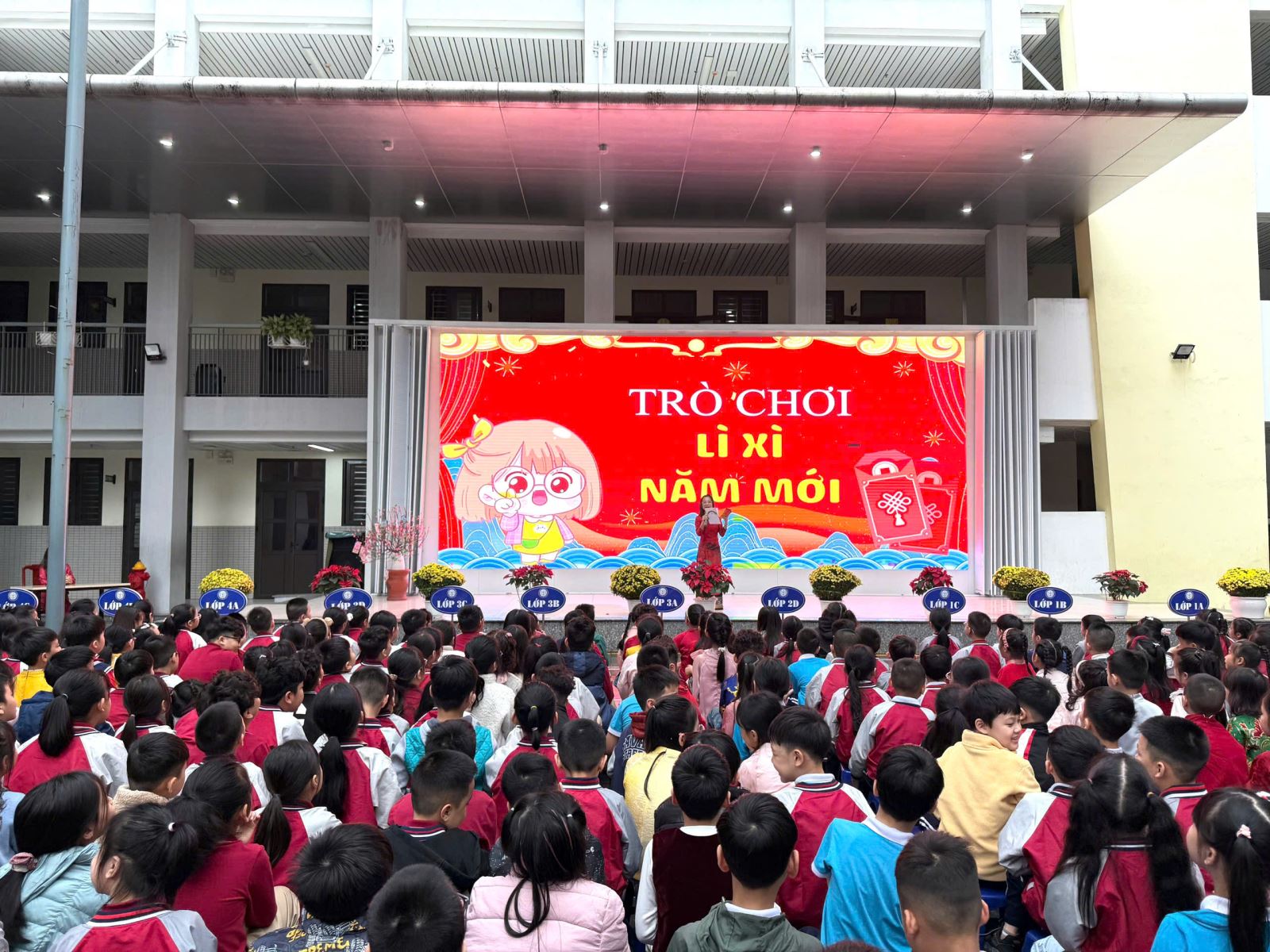 Tiếp nối chương trình là các hoạt động vui chơi đầy hào hứng. Trò chơi “Lì xì năm mới” mang đến những phần quà nhỏ xinh cùng lời chúc đầu năm ý nghĩa, tạo nên bầu không khí vui tươi, rộn ràng tiếng cười. Các em học sinh tham gia với tinh thần phấn khởi, hào hứng và trật tự.