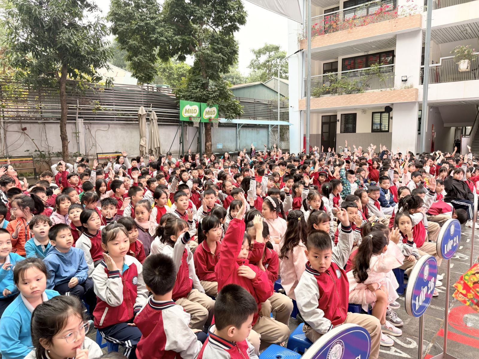 Điểm nhấn của chương trình là hoạt động “Vòng quay may mắn”. Mỗi lượt quay là một khoảnh khắc hồi hộp, mỗi phần quà được trao là một niềm vui lan tỏa. Sân trường như bừng sáng bởi sự cổ vũ nhiệt tình và những nụ cười rạng rỡ của các em học sinh cùng các thầy cô giáo.