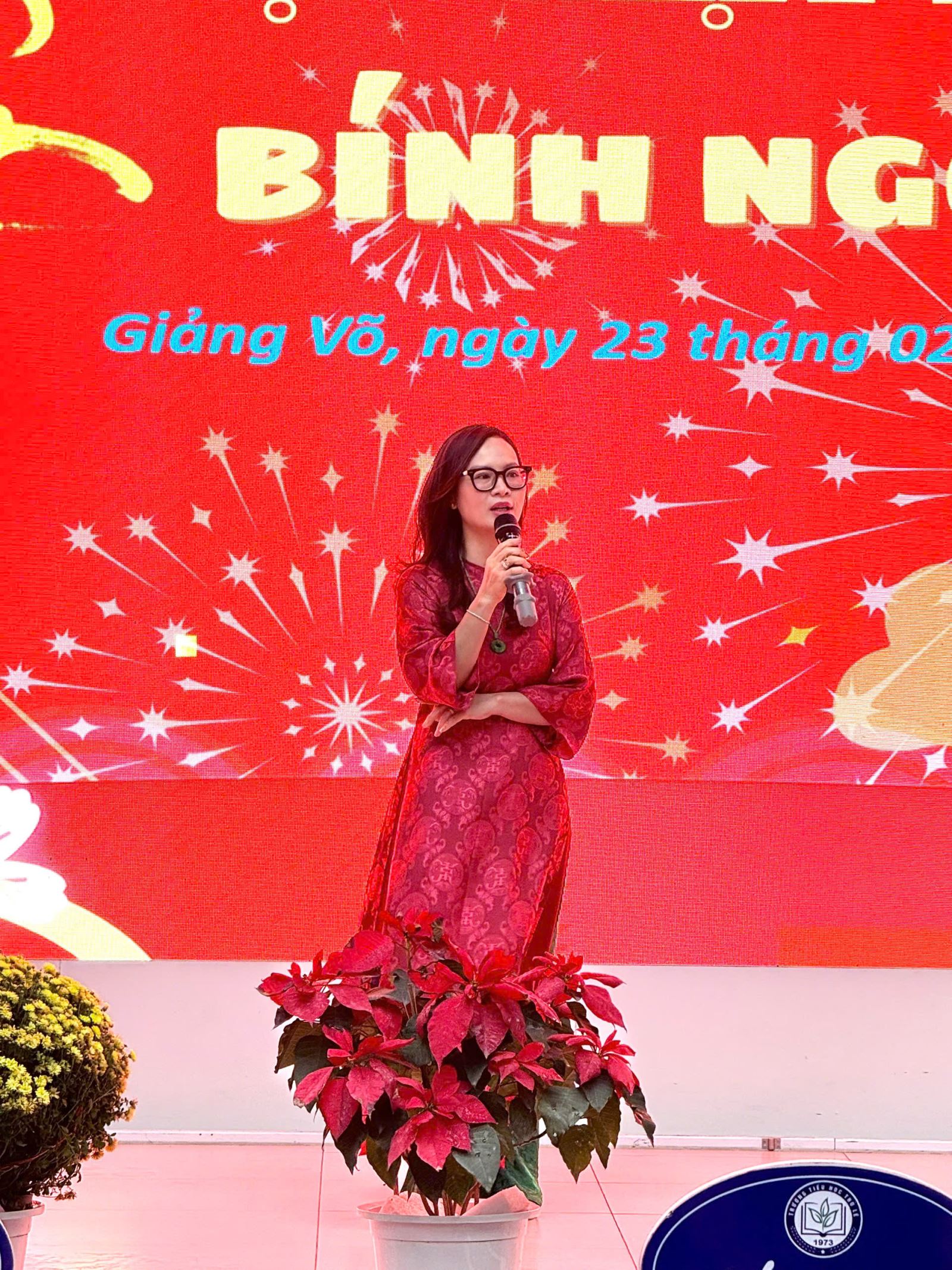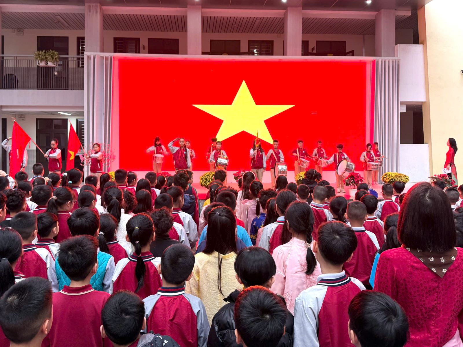 Mở đầu chương trình, cô giáo Nguyễn Ngọc Anh – Phó Bí thư Chi bộ, Hiệu trưởng nhà trường đã gửi tới toàn thể cán bộ, giáo viên, nhân viên và các em học sinh những lời chúc mừng năm mới tốt đẹp nhất. Trong bài phát biểu, cô ghi nhận những nỗ lực và thành tích của thầy và trò trong thời gian qua, đồng thời bày tỏ mong muốn tập thể nhà trường tiếp tục phát huy tinh thần đoàn kết, sáng tạo, quyết tâm hoàn thành xuất sắc nhiệm vụ năm học 2025–2026. Những lời động viên chân thành của cô đã tiếp thêm động lực, niềm tin và khí thế mới cho toàn thể nhà trường trong những ngày đầu xuân.