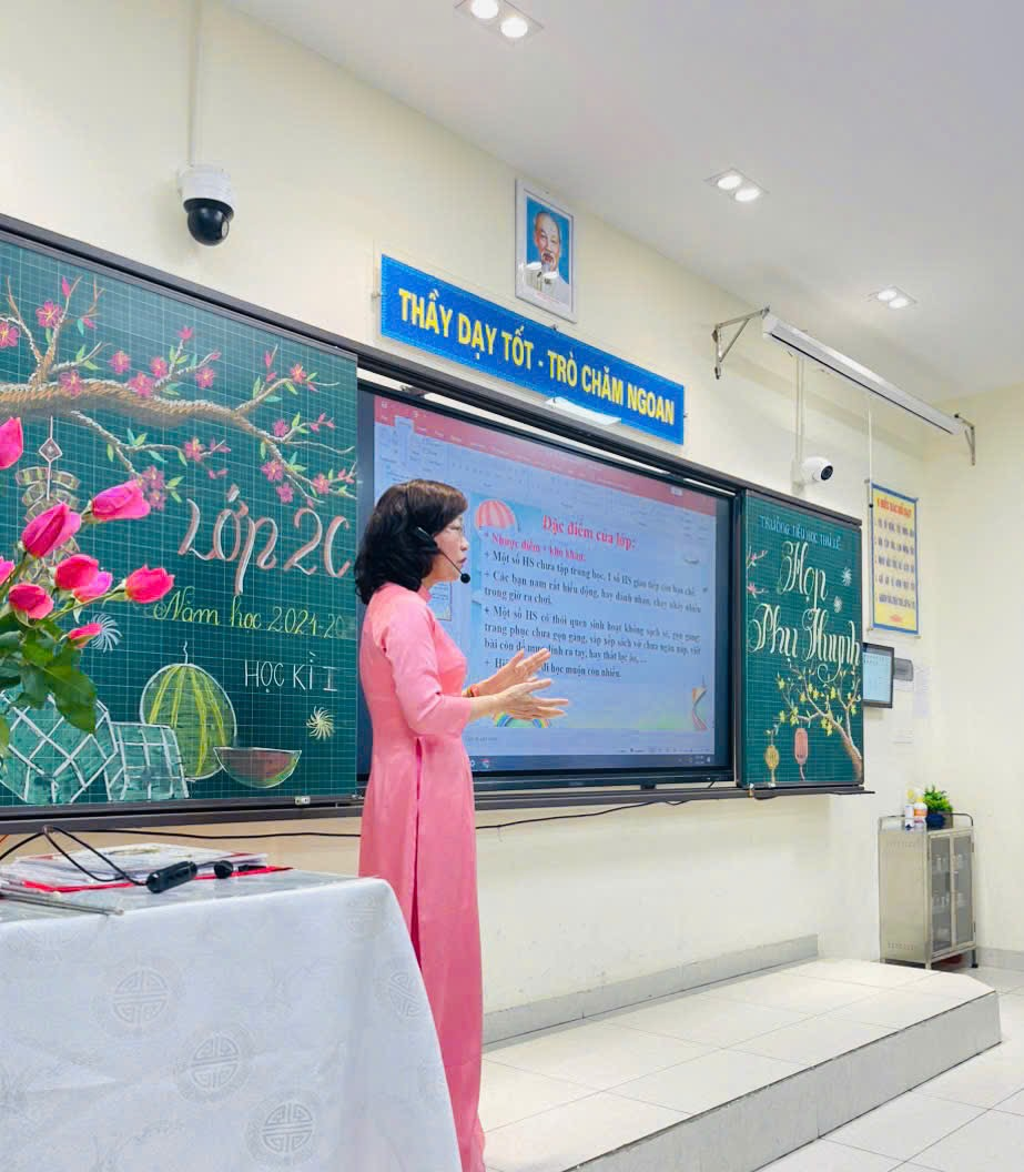 GVCN thông báo về thành tích học tập cùng các hoạt động về chuyên môn của nhà trường đã đạt được trong học kỳ I vừa qua. Phần lớn thời gian của buổi họp cô Hoàng Thị Lương dành để chia sẻ về điểm mạnh, điểm yếu cùng những điều đáng ghi nhận của từng học sinh tới quý phụ huynh. Nhằm mục đích giáo dục các con hoàn thiện về nhân cách, học thức cùng kỹ năng trong cuộc sống.