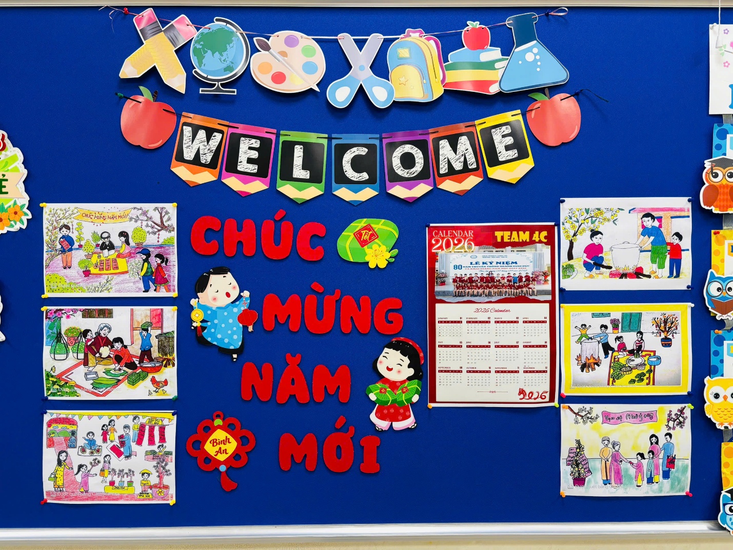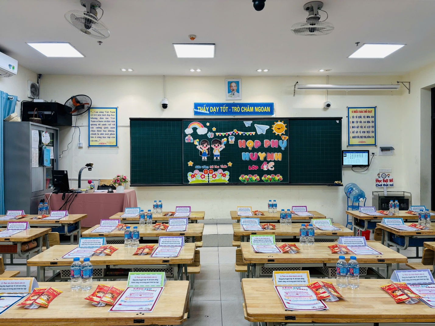 Trước giờ họp phụ huynh sơ kết học kì I, cô giáo chủ nhiệm đã chuẩn bị chu đáo, trang trí lớp học gọn gàng, ấm áp, sẵn sàng chào đón các bậc cha mẹ học sinh. Không khí lớp học càng trở nên rộn ràng hơn khi các bạn nhỏ lớp 4C cùng cô giáo tham gia chuẩn bị những chiếc “bánh kem thành tựu” xinh xắn, đáng yêu – món quà bất ngờ đầy ý nghĩa dành tặng bố mẹ sau một học kì nỗ lực và cố gắng.