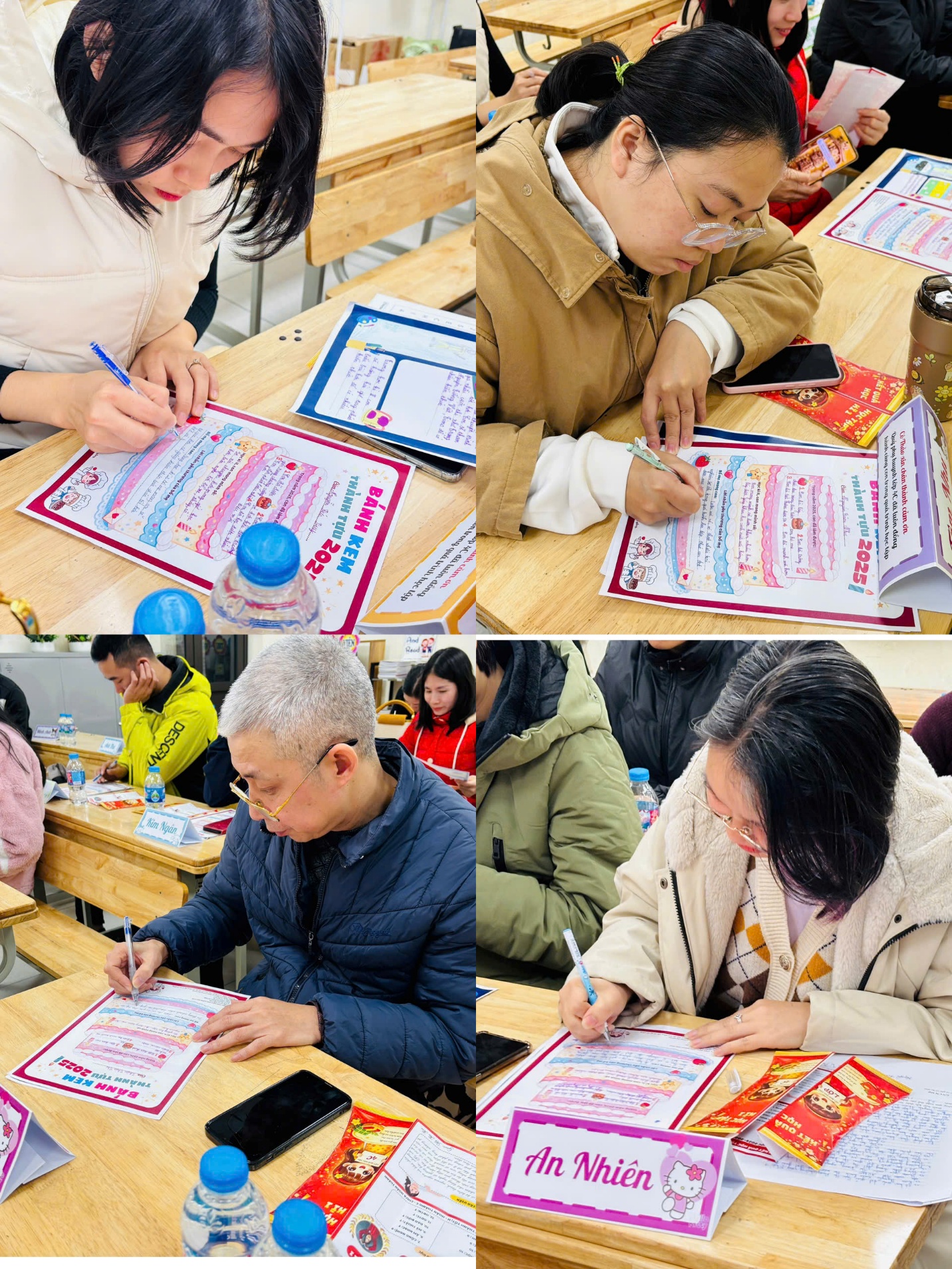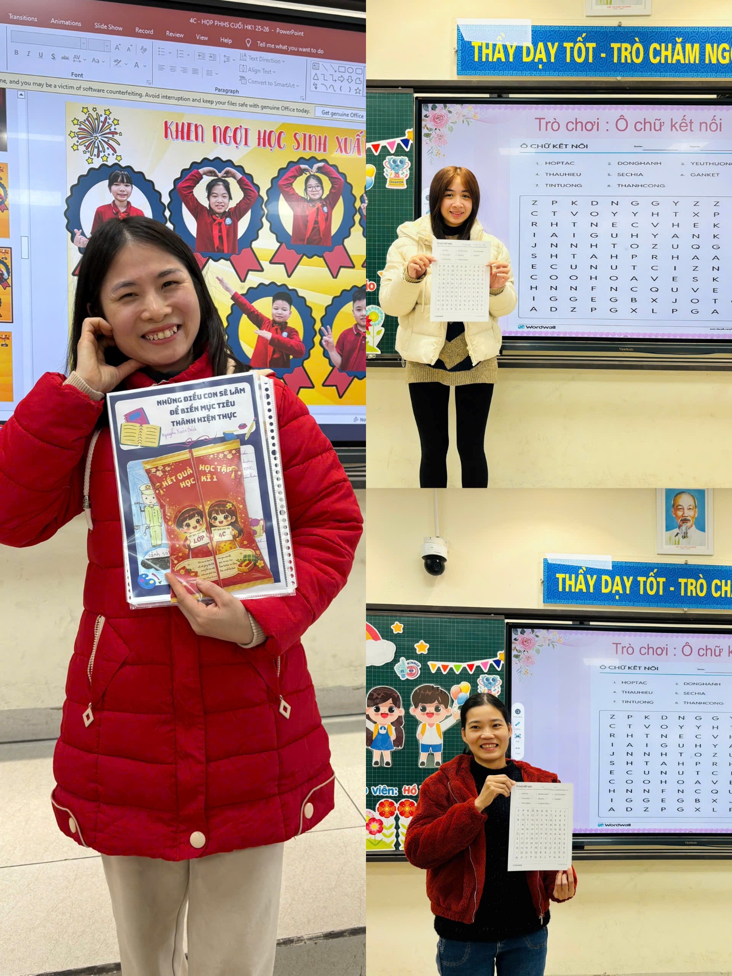 Không dừng lại ở việc trao đổi thông tin, buổi họp còn mang đến nhiều hoạt động trải nghiệm thú vị và giàu cảm xúc. Các bậc phụ huynh đã dành thời gian viết những lời nhắn gửi yêu thương, động viên con vào chính những chiếc “bánh kem thành tựu” mà các con đã tự tay chuẩn bị. Tiếp nối chương trình là trò chơi “Ô chữ kết nối” – hoạt động nhận được sự hưởng ứng nhiệt tình, tạo nên không khí vui tươi, gắn kết giữa cha mẹ – giáo viên – nhà trường.
