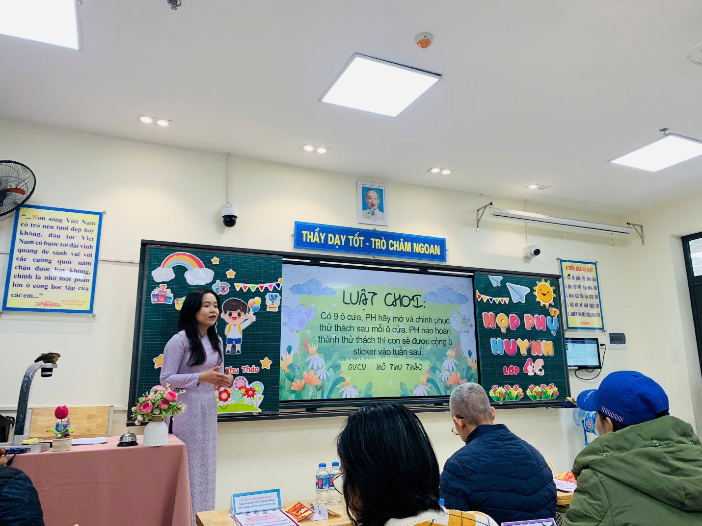 Mở đầu buổi họp, giáo viên chủ nhiệm đã khéo léo khích lệ, động viên các bậc phụ huynh cùng tham gia một trò chơi nhỏ nhằm làm ấm bầu không khí, giúp buổi gặp gỡ trở nên gần gũi, thân tình hơn. Ngay sau đó, các nội dung chính của buổi họp được triển khai một cách rõ ràng và khoa học.