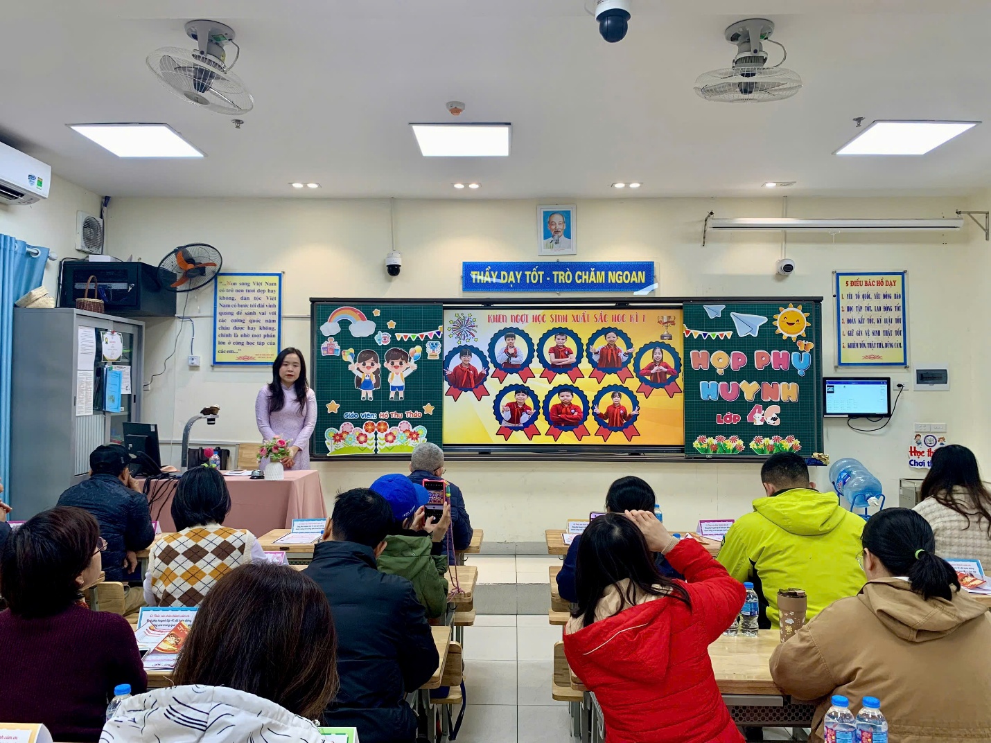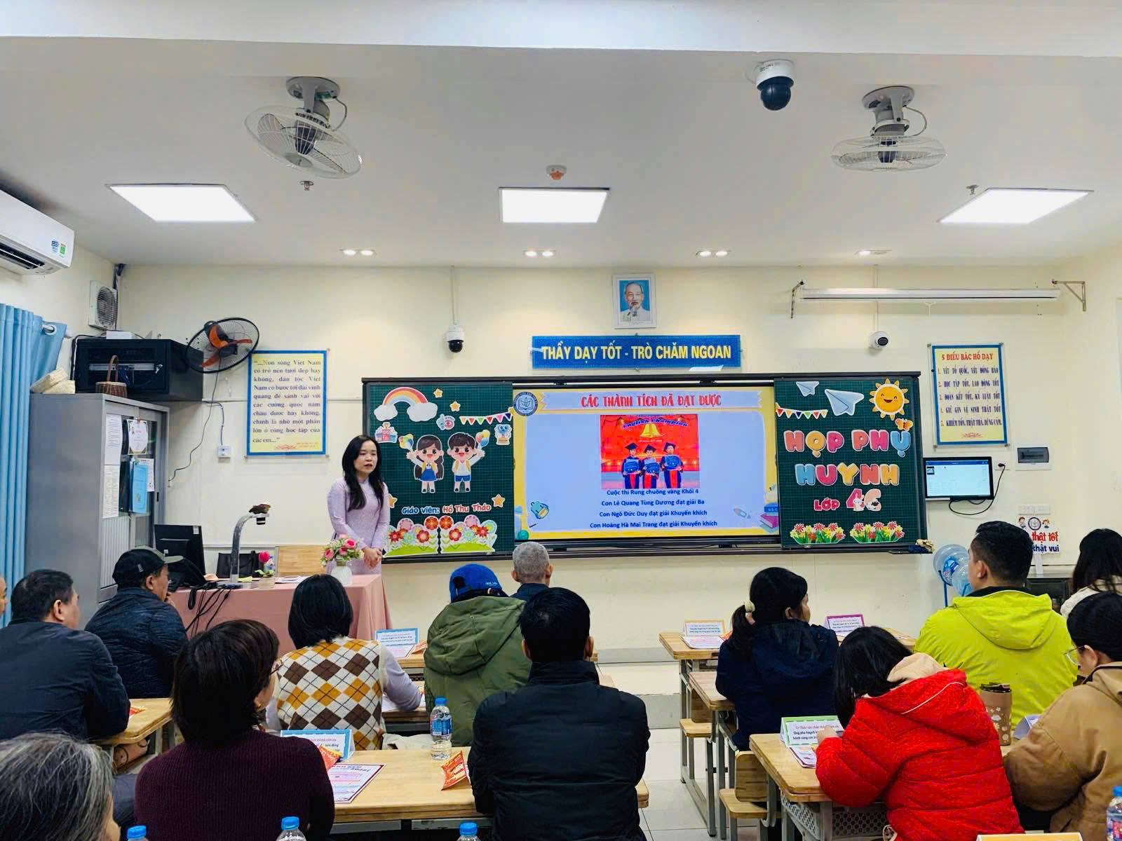 Sau phần báo cáo kết quả học tập và các hoạt động giáo dục nổi bật của nhà trường trong học kì I, giáo viên chủ nhiệm tập trung trao đổi cụ thể về tình hình học tập, rèn luyện của học sinh lớp 4C, đồng thời chia sẻ những định hướng, phương hướng phấn đấu trong học kì II, mong muốn tiếp tục nhận được sự đồng hành chặt chẽ từ gia đình.