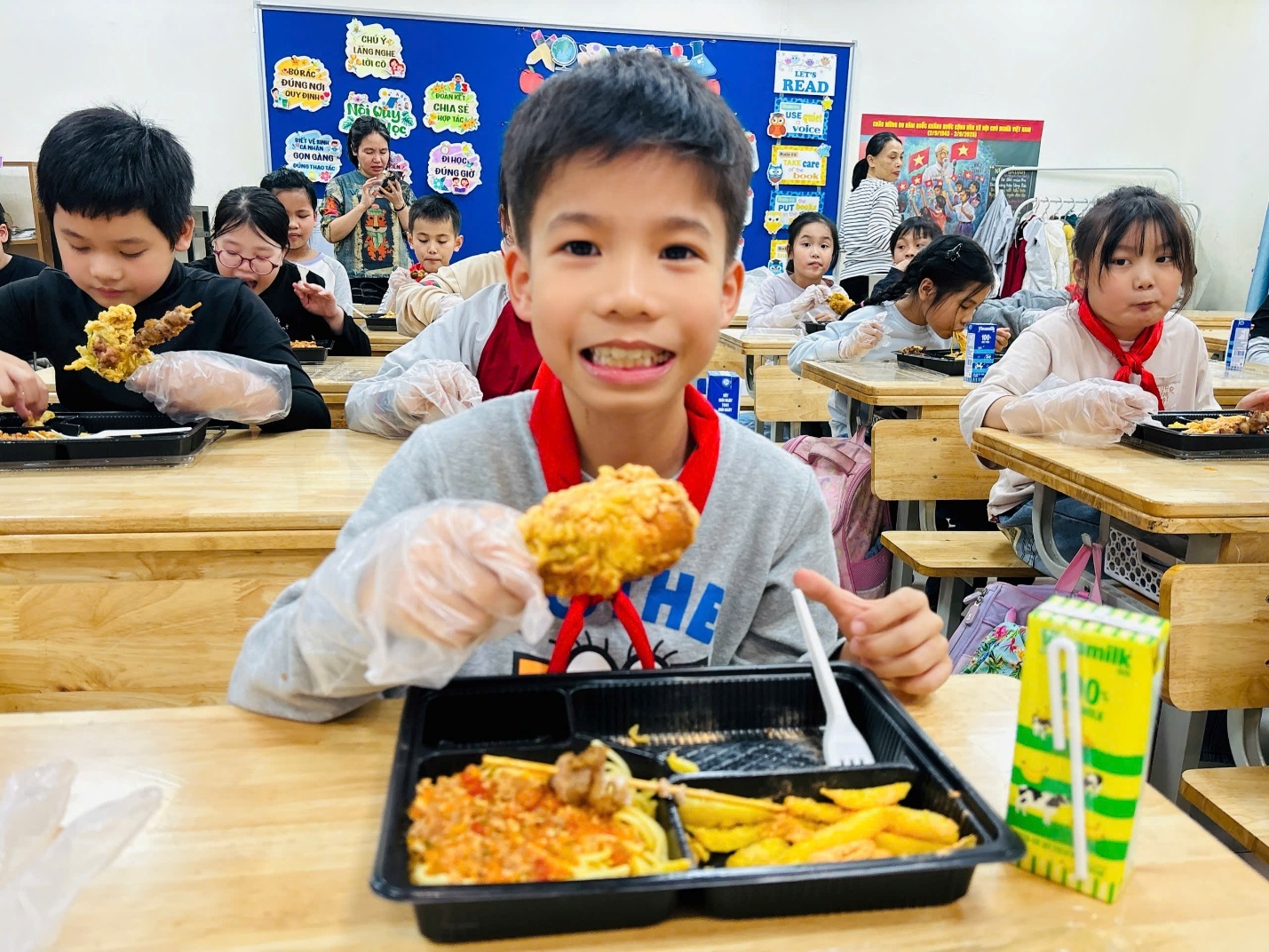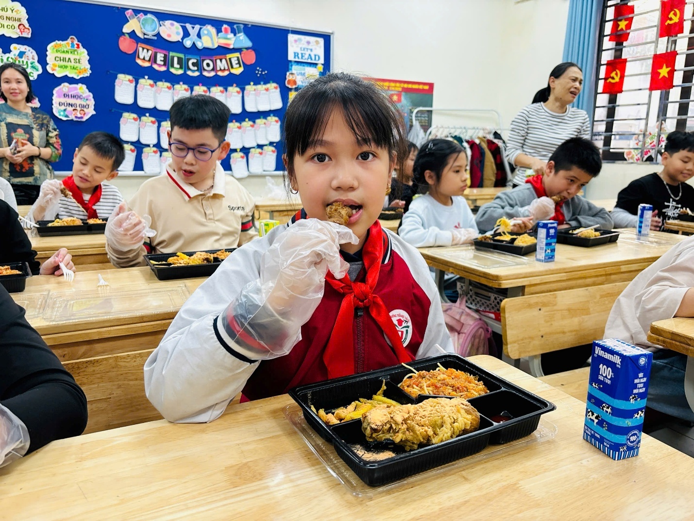 Kết thúc buổi sơ kết, cả lớp cùng nhau liên hoan với những món ăn ngon do bếp ăn nhà trường chuẩn bị cẩn thận, đảm bảo an toàn. Những tiếng cười rộn ràng, những khoảnh khắc vui vẻ bên bạn bè đã giúp buổi sơ kết khép lại thật trọn vẹn và đáng nhớ.