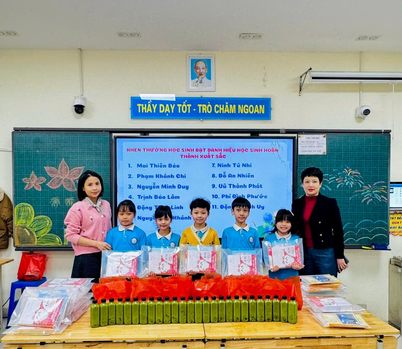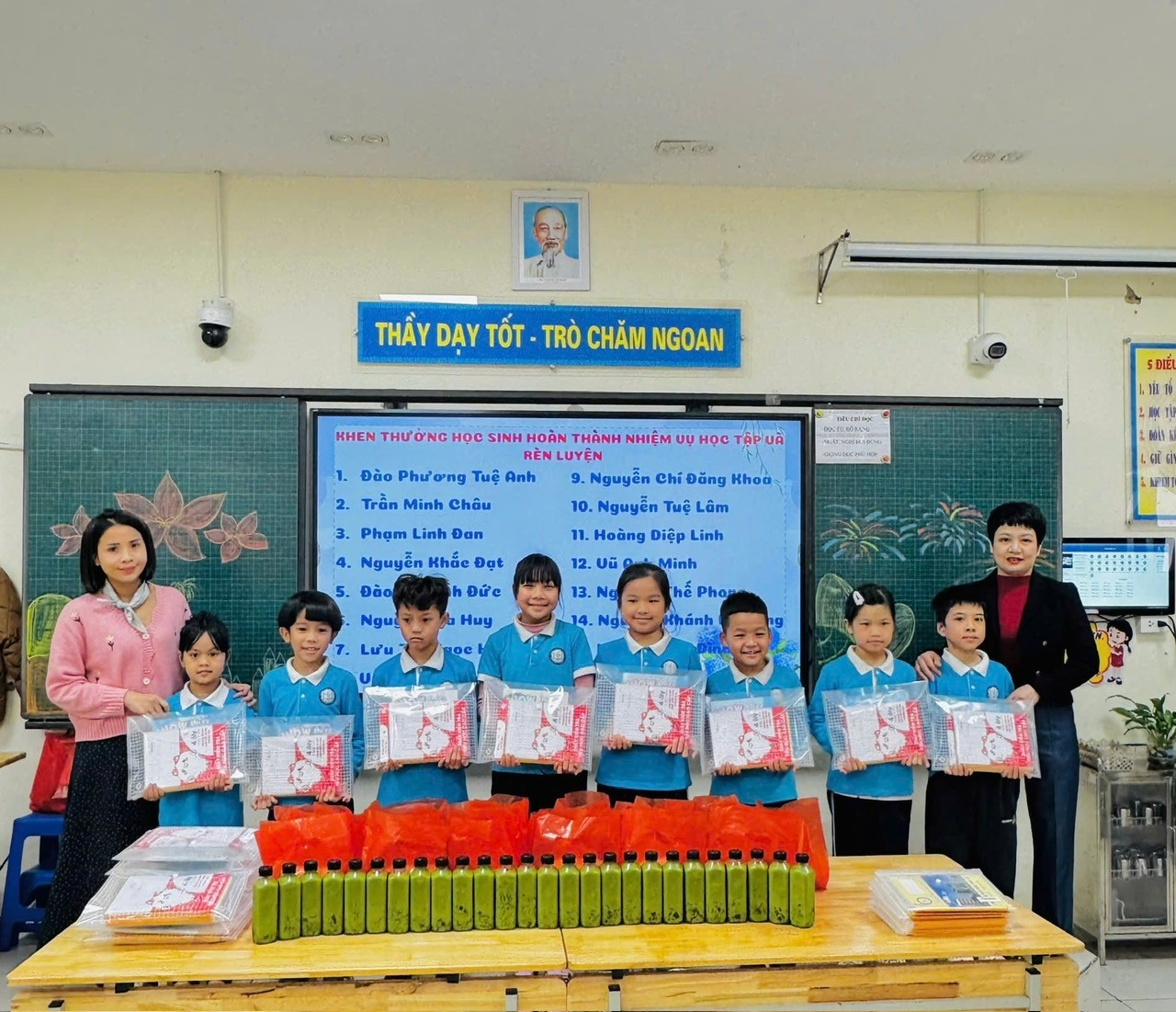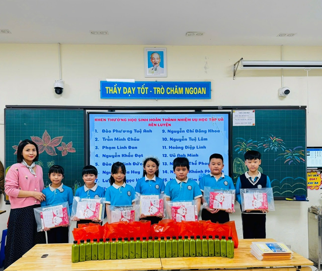 Không chỉ vậy, lớp 3A còn có một phần vô cùng ý nghĩa – tặng quà các cán bộ lớp gồm lớp trưởng, lớp phó và các tổ trưởng. Đây là sự ghi nhận đối với những bạn nhỏ đã luôn trách nhiệm, nhiệt tình, gương mẫu trong việc hỗ trợ cô giáo và quản lý nề nếp lớp. Những món quà tuy nhỏ nhưng chứa đựng nhiều tình cảm và sự trân trọng của cả tập thể lớp.