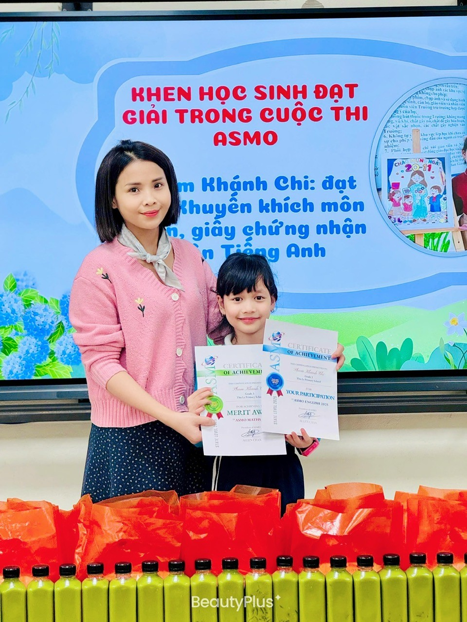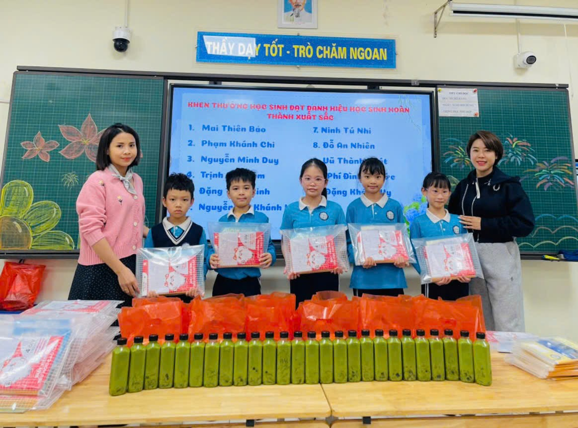 Trong buổi sơ kết cô giáo đã công bố danh sách học sinh đạt danh hiệu học sinh Xuất sắc, học sinh Hoàn thành trong nhiệm vụ học tập và rèn luyện, học sinh đạt giải trong cuộc thi Asmo và trao phần trao thưởng cho các học sinh. Những tràng pháo tay và sự hân hoa hiện lên khi các con được xướng tên bước lên nhận phần quà ý nghĩa. Niềm vui, sự tự hào hiện rõ trên từng gương mặt nhỏ xinh – đó chính là thành quả xứng đáng cho sự chăm chỉ, nỗ lực của các con trong suốt học kì I.
