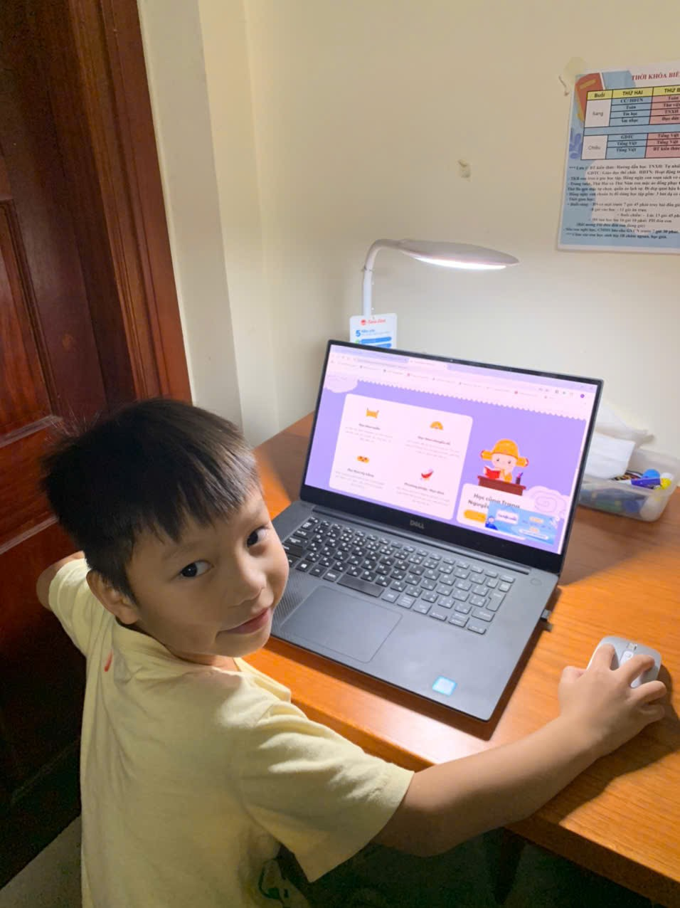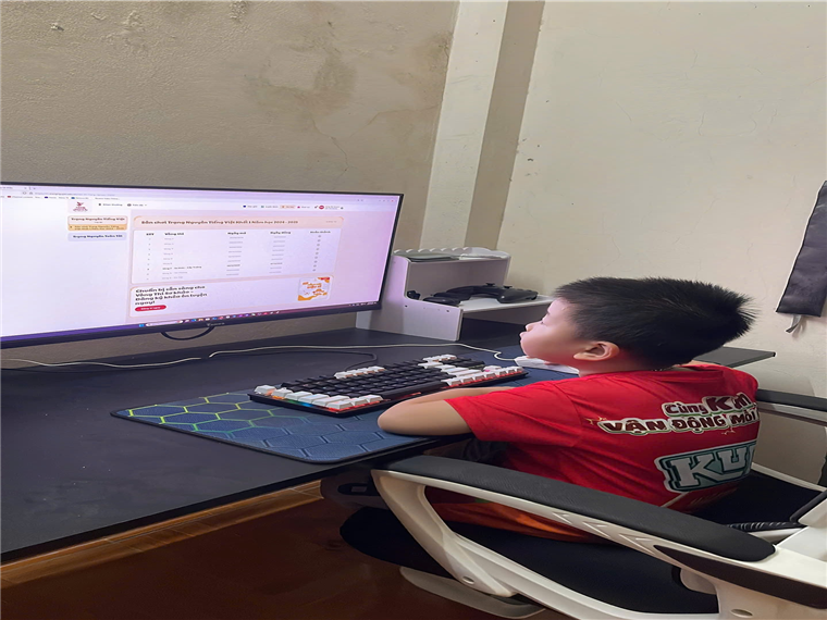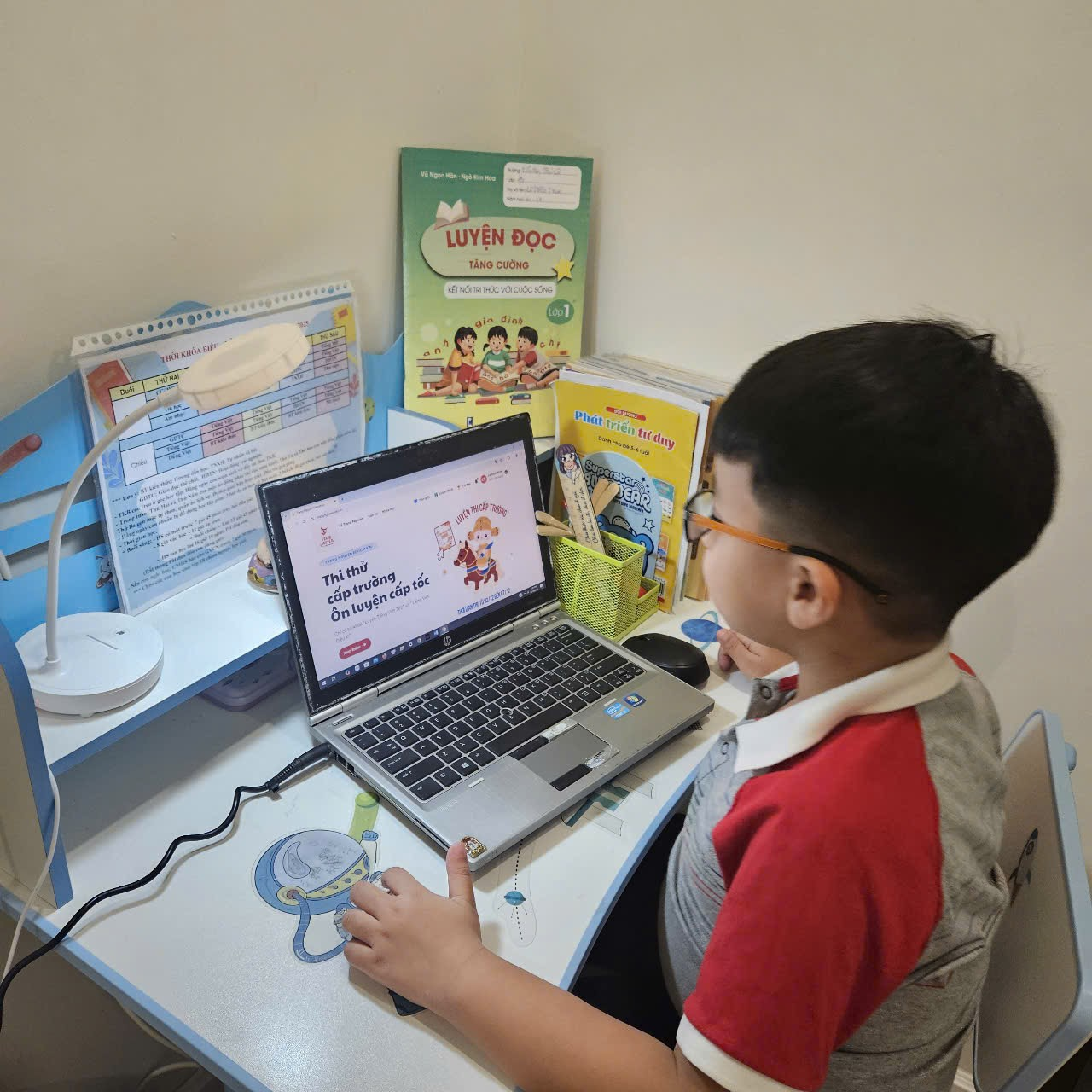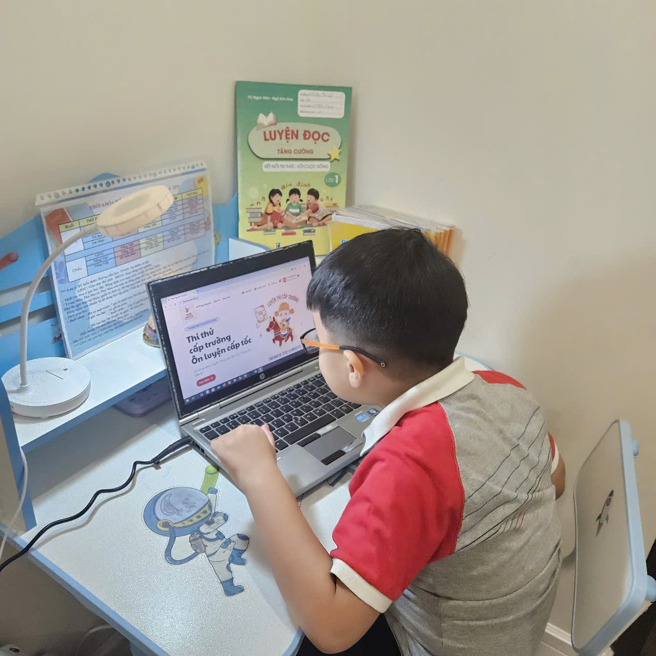 Các con học sinh say sưa làm các vòng thi điều kiện Trạng Nguyên Tiếng Việt tại nhà