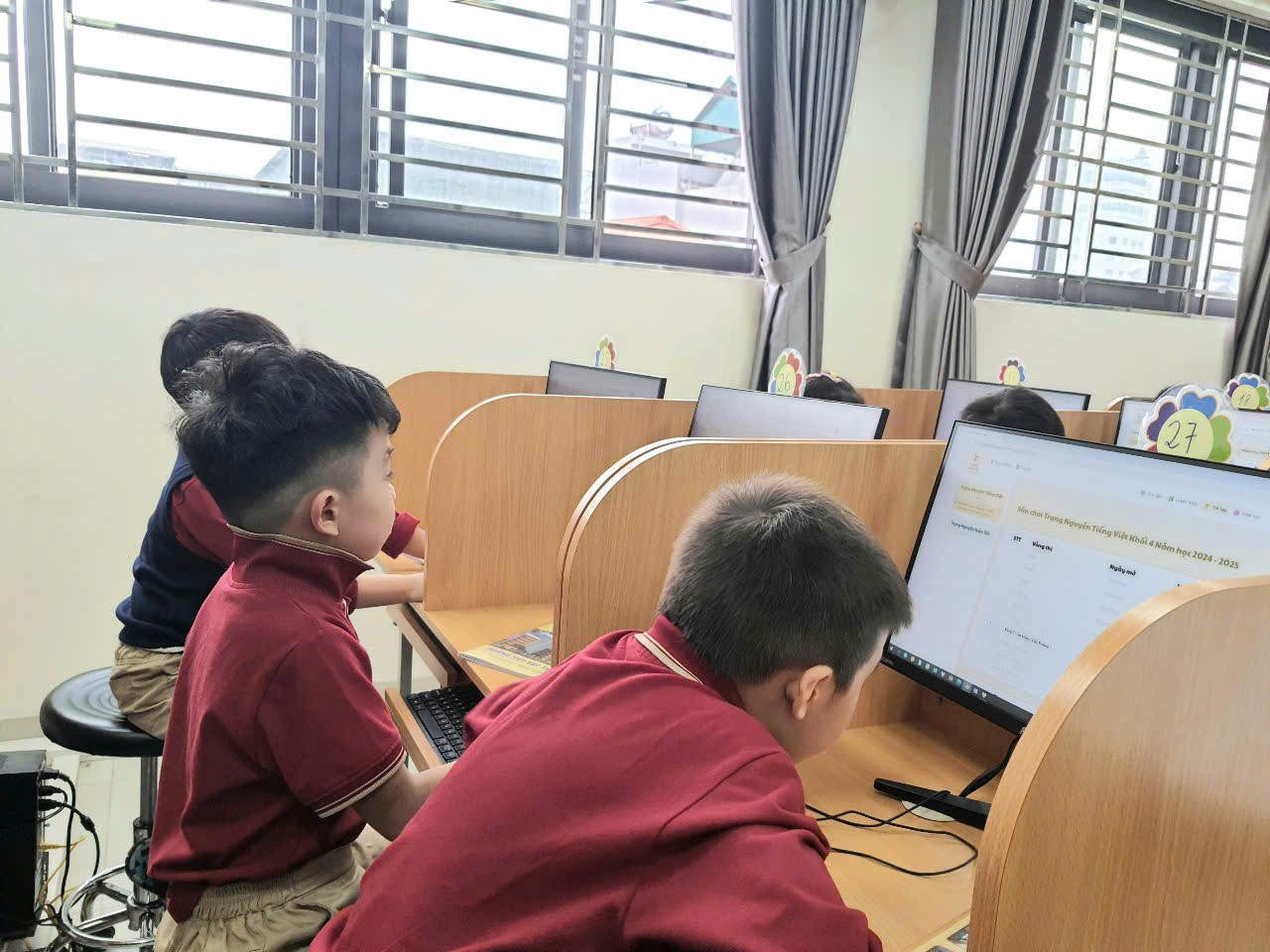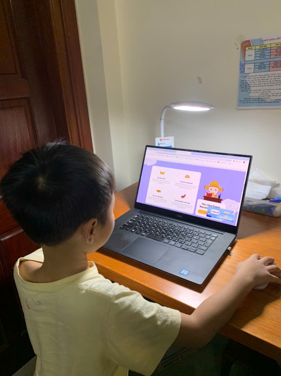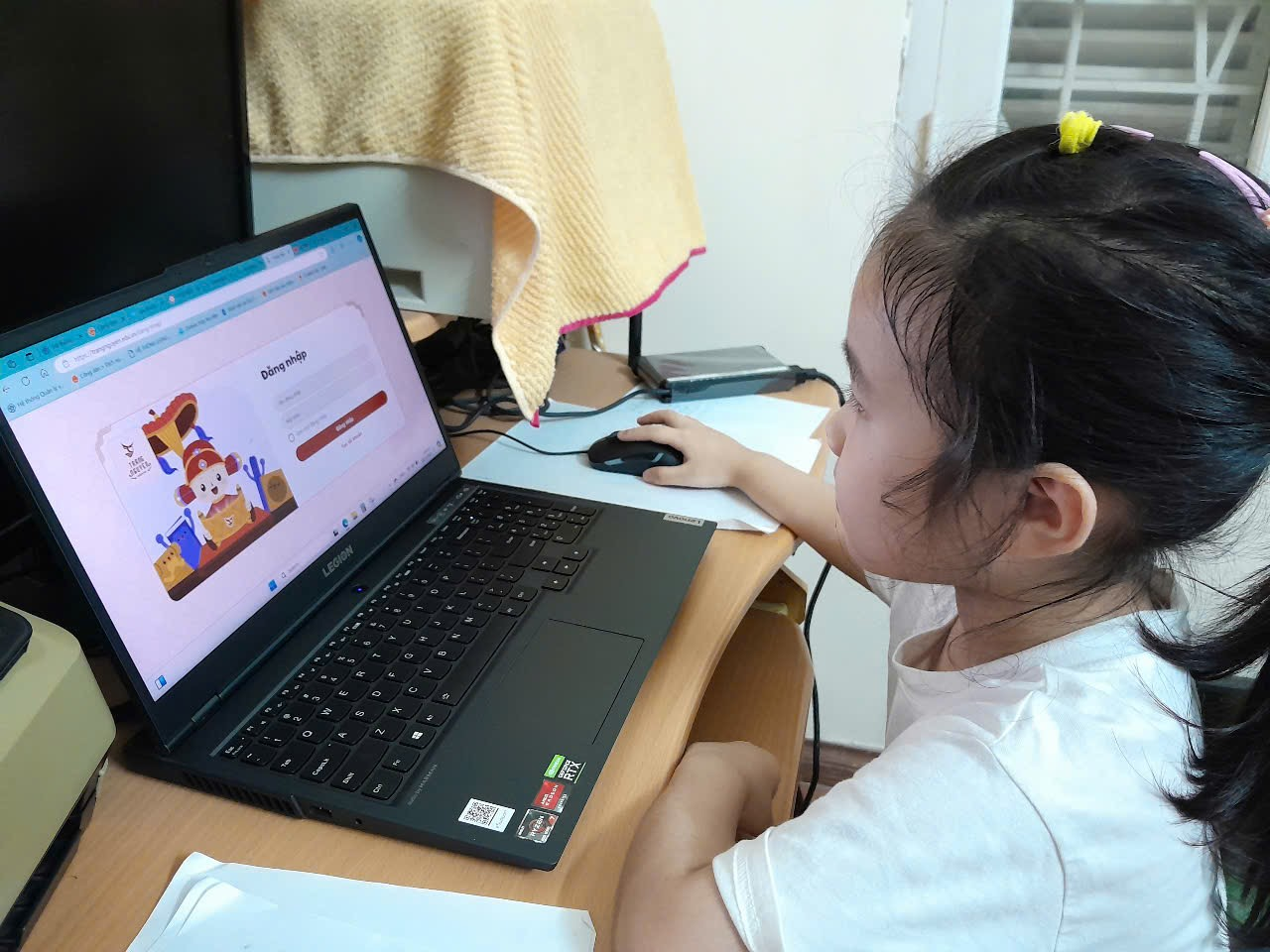 Các con học sinh say sưa làm các vòng thi điều kiện Trạng Nguyên Tiếng Việt tại nhà