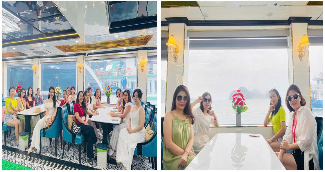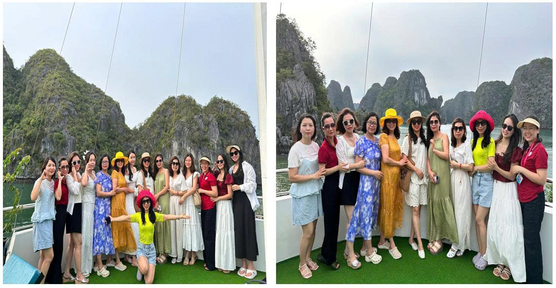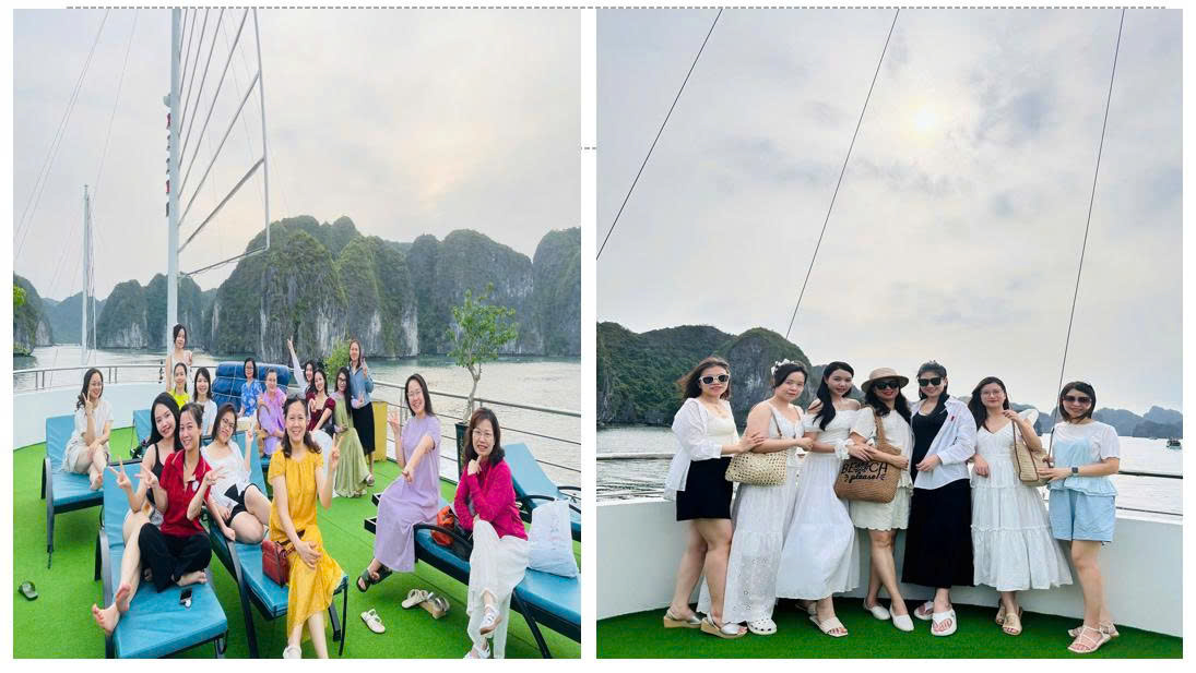 Du ngoạn trên Vịnh Lan Hạ, các thầy cô như được đắm mình giữa thiên nhiên hoang sơ với hàng trăm hòn đảo lớn nhỏ nhấp nhô giữa làn nước xanh ngọc. Trên boong tàu, gió biển dịu dàng thổi, sóng nước vỗ nhẹ, mọi lo toan thường nhật như được gột rửa, để lại chỉ còn lại sự tĩnh tại và thư thái.