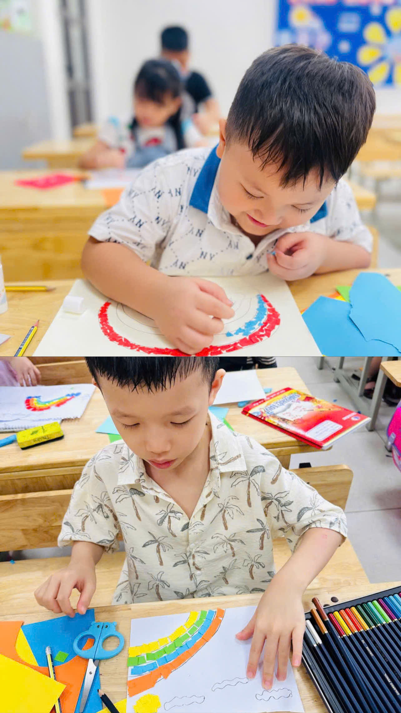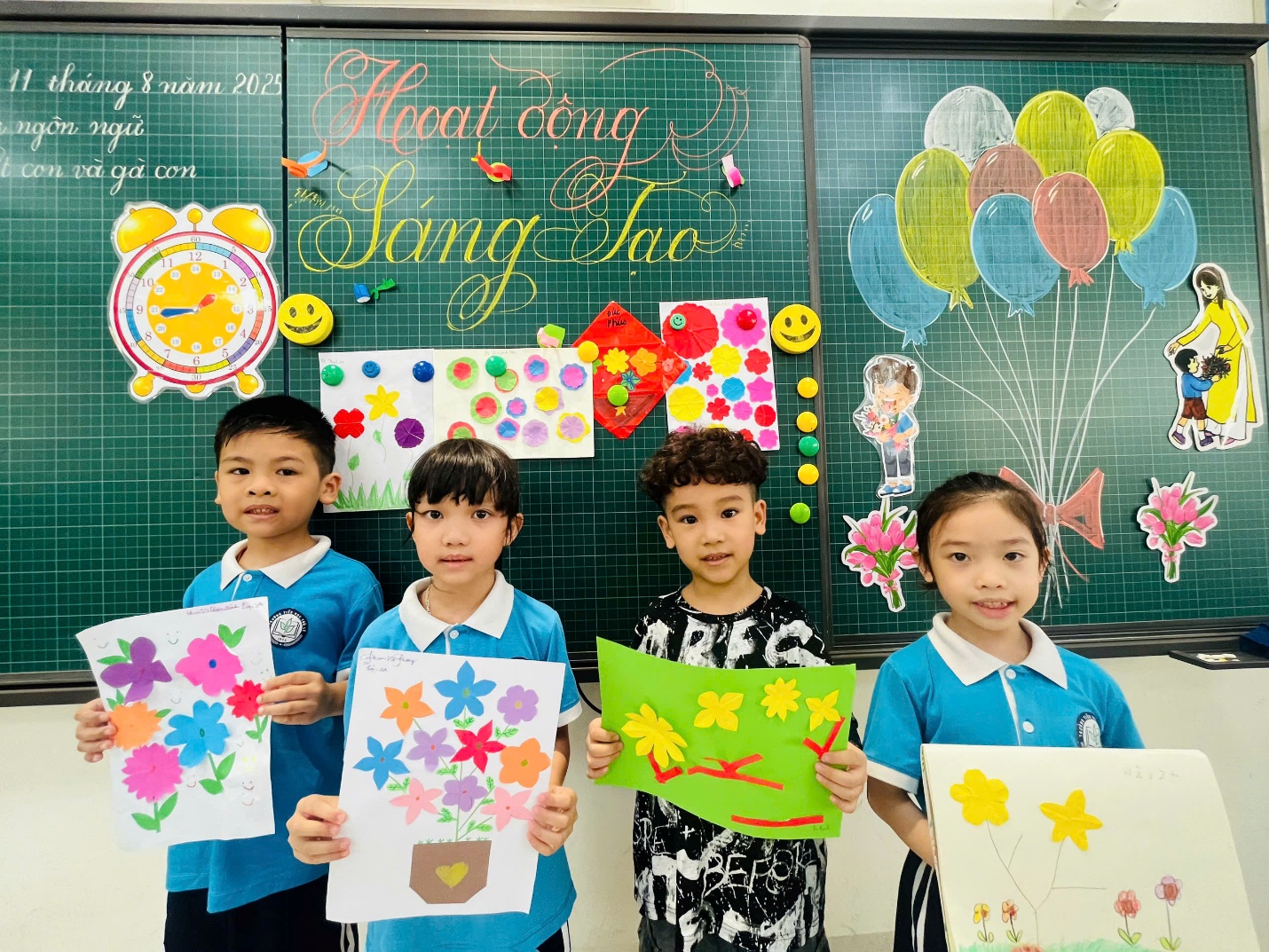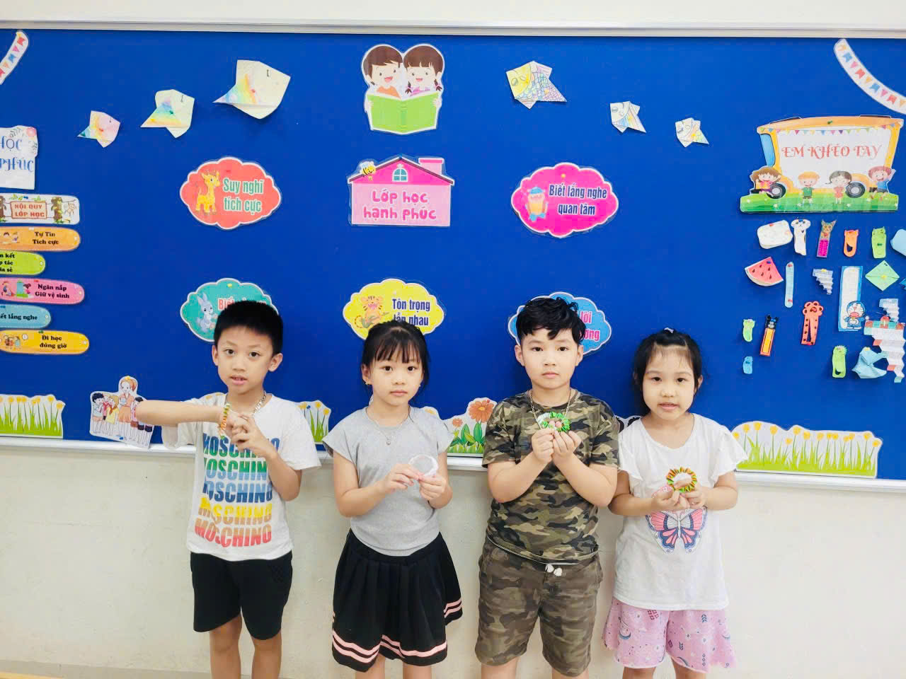 Trong các tiết “Hoạt động sáng tạo và tiết Hoạt động trải nghiệm”, từ những vật dụng đơn giản như giấy màu, kéo, hồ dán… cùng với sự chỉ dẫn tận tình của các cô giáo, chúng mình đã đã tạo nên những sản phẩm thủ công vô cùng đẹp mắt và độc đáo.