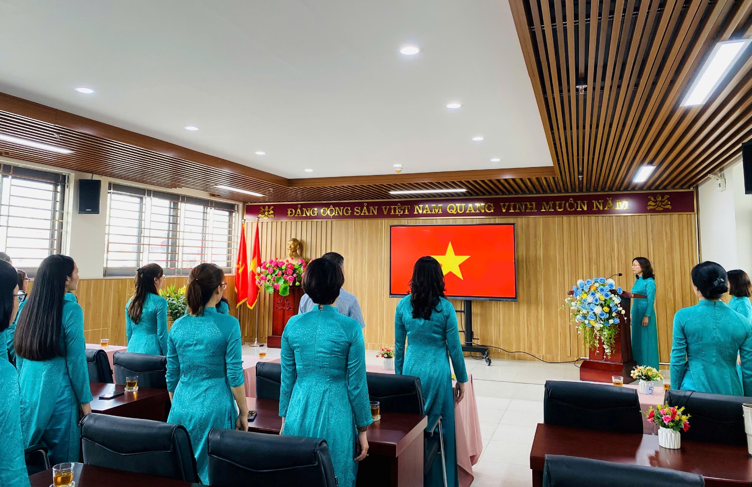 Sau phần công bố Quyết định kết nạp của Đảng ủy cấp trên, đồng chí Nguyễn Thị Lan Phương đã đứng trước cờ Đảng, cờ Tổ quốc và chân dung Chủ tịch Hồ Chí Minh, đọc lời tuyên thệ của người đảng viên Đảng Cộng sản Việt Nam.