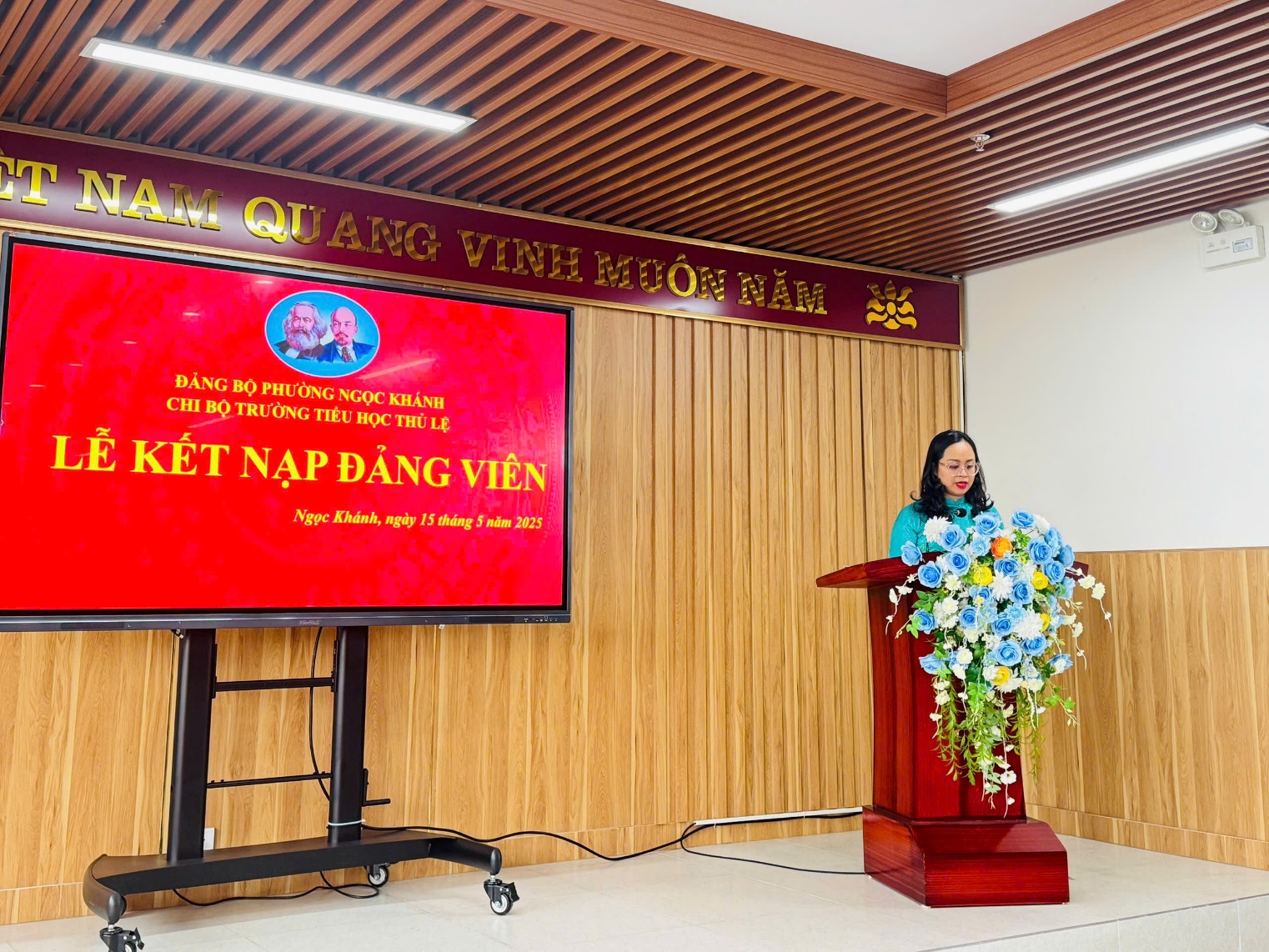 Chiều ngày 15 tháng 5 năm 2025, được sự đồng ý của Đảng uỷ phường Ngọc Khánh, Chi bộ trường Tiểu học Thủ Lệ long trọng tổ chức Lễ kết nạp Đảng viên mới cho quần chúng ưu tú Nguyễn Thị Lan Phương, giáo viên nhà trường.
