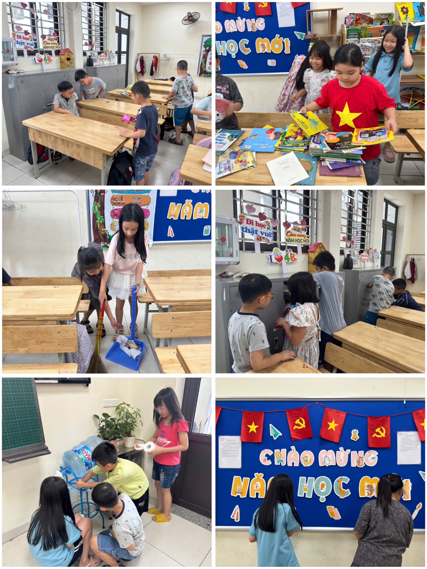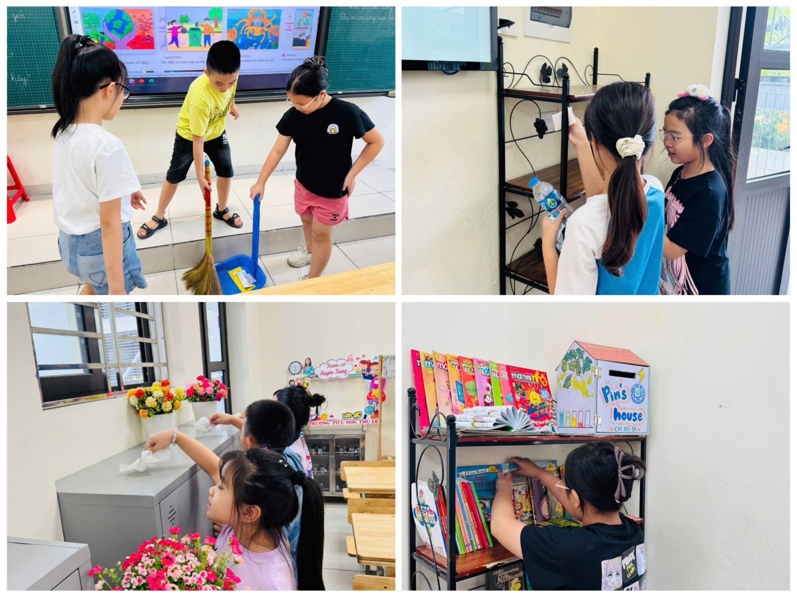 HS trải nghiệm dọn dẹp, vệ sinh lớp học