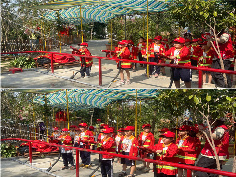 Một trong những hoạt động được các em háo hức tham gia nhất là mô phỏng các nghiệp vụ của lính lục quân và đội ngũ chữa cháy. Các em đã được hóa thân thành những chiến sĩ dũng cảm, tham gia vào các bài huấn luyện cơ bản như tập thể lực, rèn luyện kỹ năng vượt chướng ngại vật và học hỏi cách thức chữa cháy cơ bản. Những hoạt động này không chỉ giúp các em rèn luyện sức khỏe mà còn khơi dậy tinh thần đoàn kết, teamwork và ý thức bảo vệ an toàn cộng đồng.