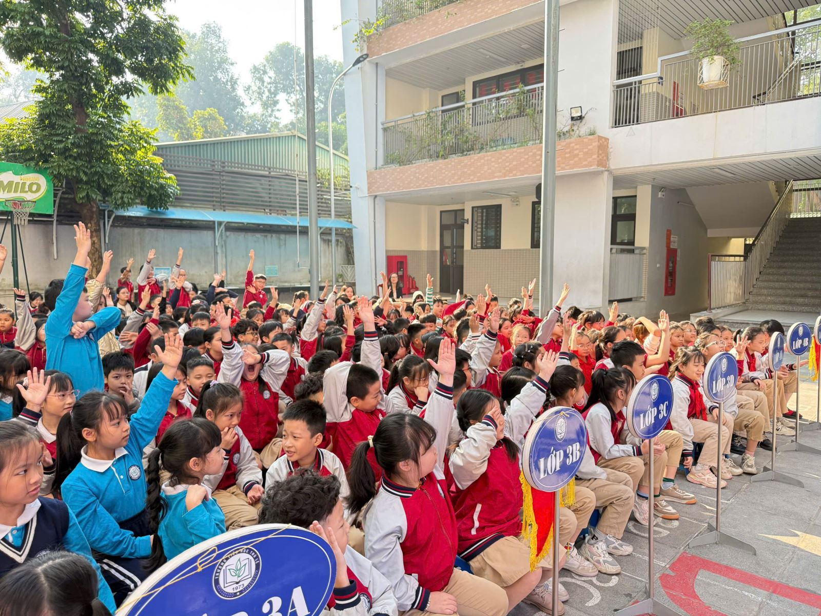 Cuối chương trình, học sinh toàn trường còn được tham gia giao lưu – hỏi đáp, xử lý các tình huống do Ban Tổ chức đưa ra. Các em đã thể hiện sự tự tin, hiểu biết và tinh thần đoàn kết khi cùng thảo luận, đưa ra những cách giải quyết phù hợp và an toàn.