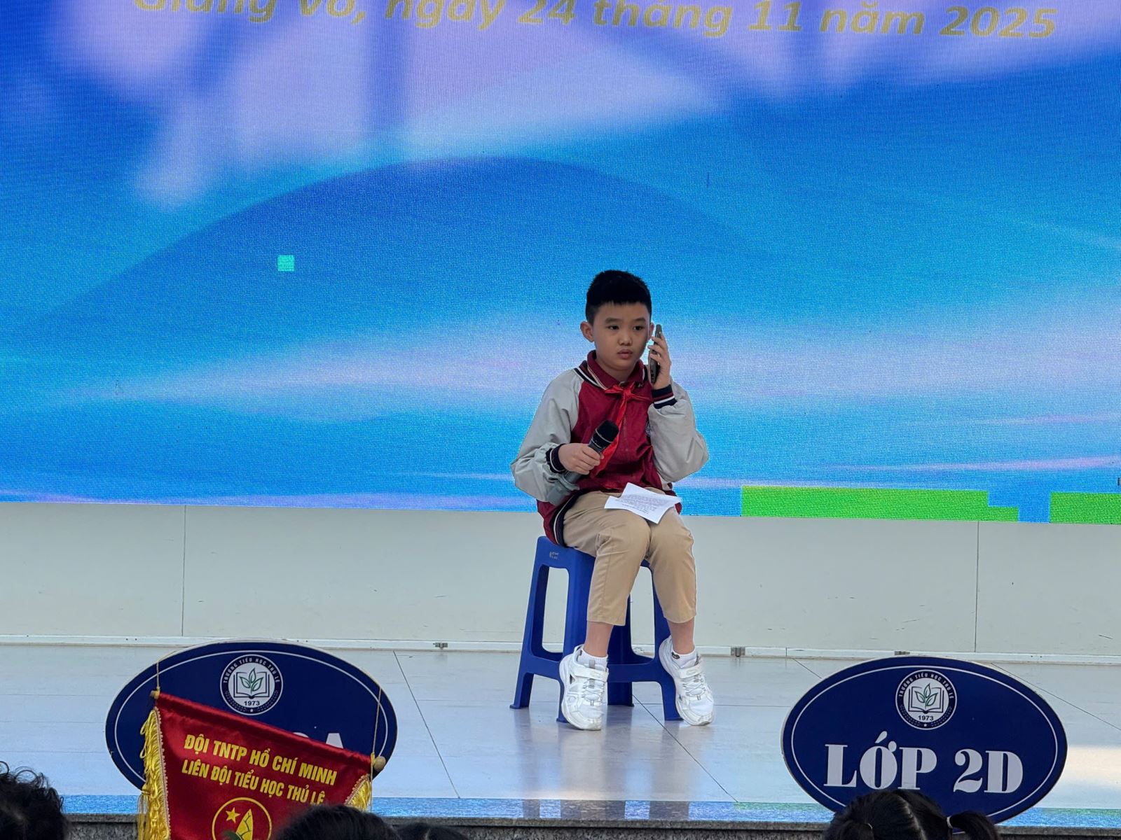 Tiểu phẩm "Cuộc gọi bất ngờ" các bạn học sinh Chi đội 4A thực hiện.