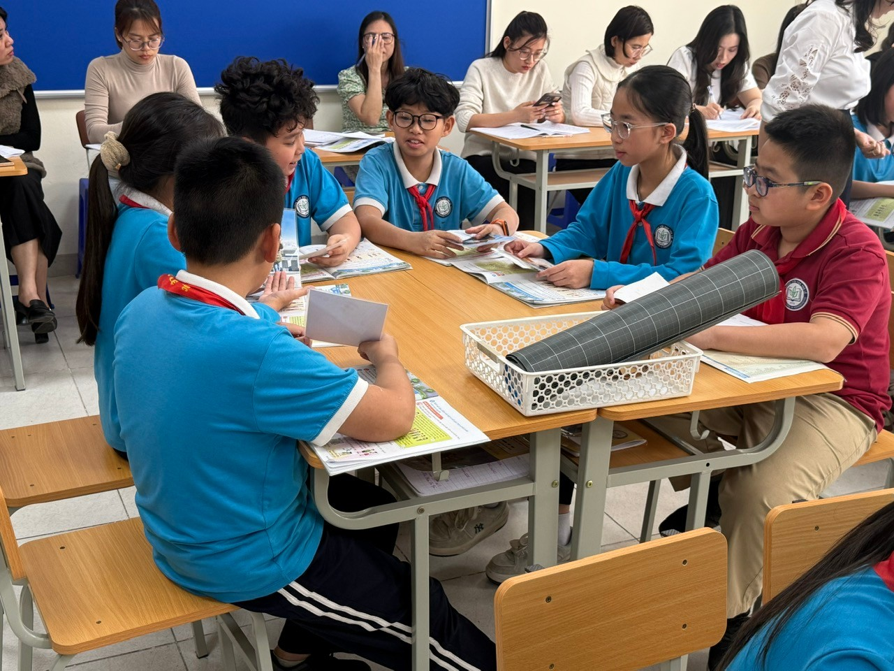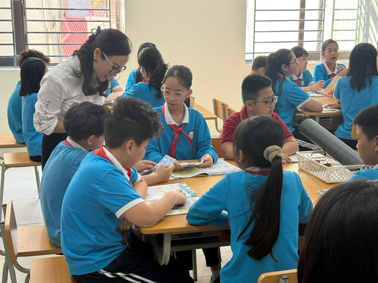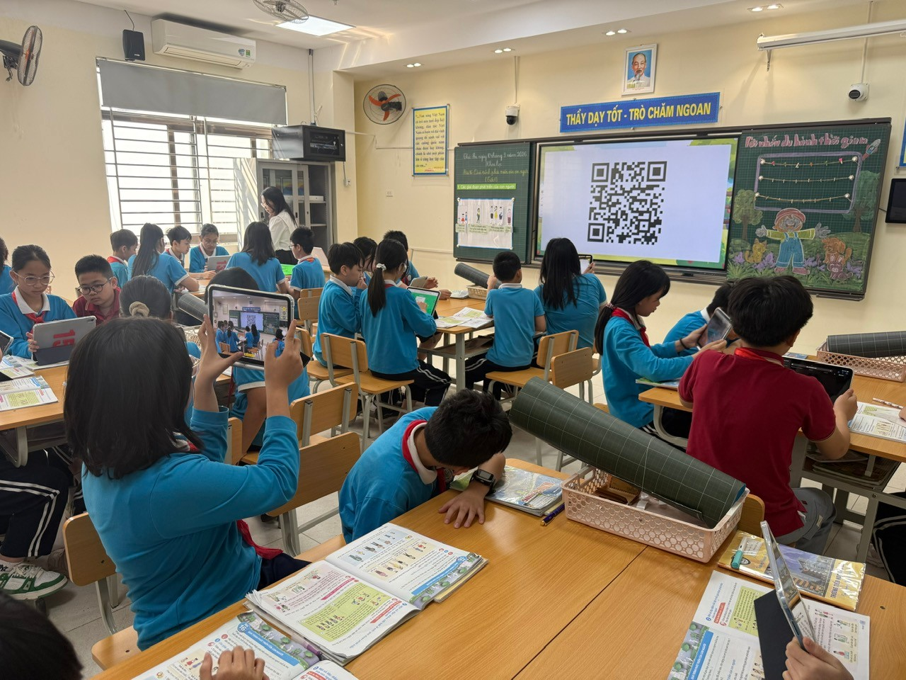 Xuyên suốt tiết dạy, cô giáo và các em học sinh đã linh hoạt sử dụng các phương pháp dạy học tích cực: phương pháp thảo luận, phương pháp thuyết trình,… Cùng với đó, việc áp dụng AI trong bài giảng điện tử đã giúp cho các hình ảnh thêm sinh động, nhiều màu sắc, khơi gợi sự tìm tòi, tăng khả năng tập trung và chủ động tiếp thu kiến thức của các em học sinh.