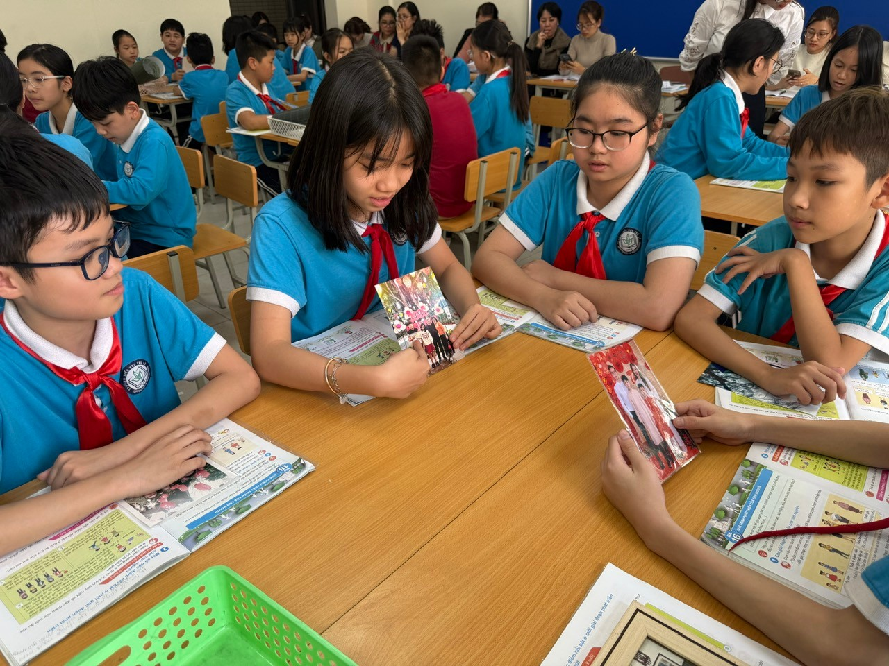 Không khí lớp học càng ấm áp khi các em chia sẻ những bức ảnh gia đình mang theo, giới thiệu về các thành viên và giai đoạn phát triển của mỗi người. Qua đó, bài học không chỉ cung cấp kiến thức mà còn giúp học sinh thêm yêu thương và trân trọng gia đình.