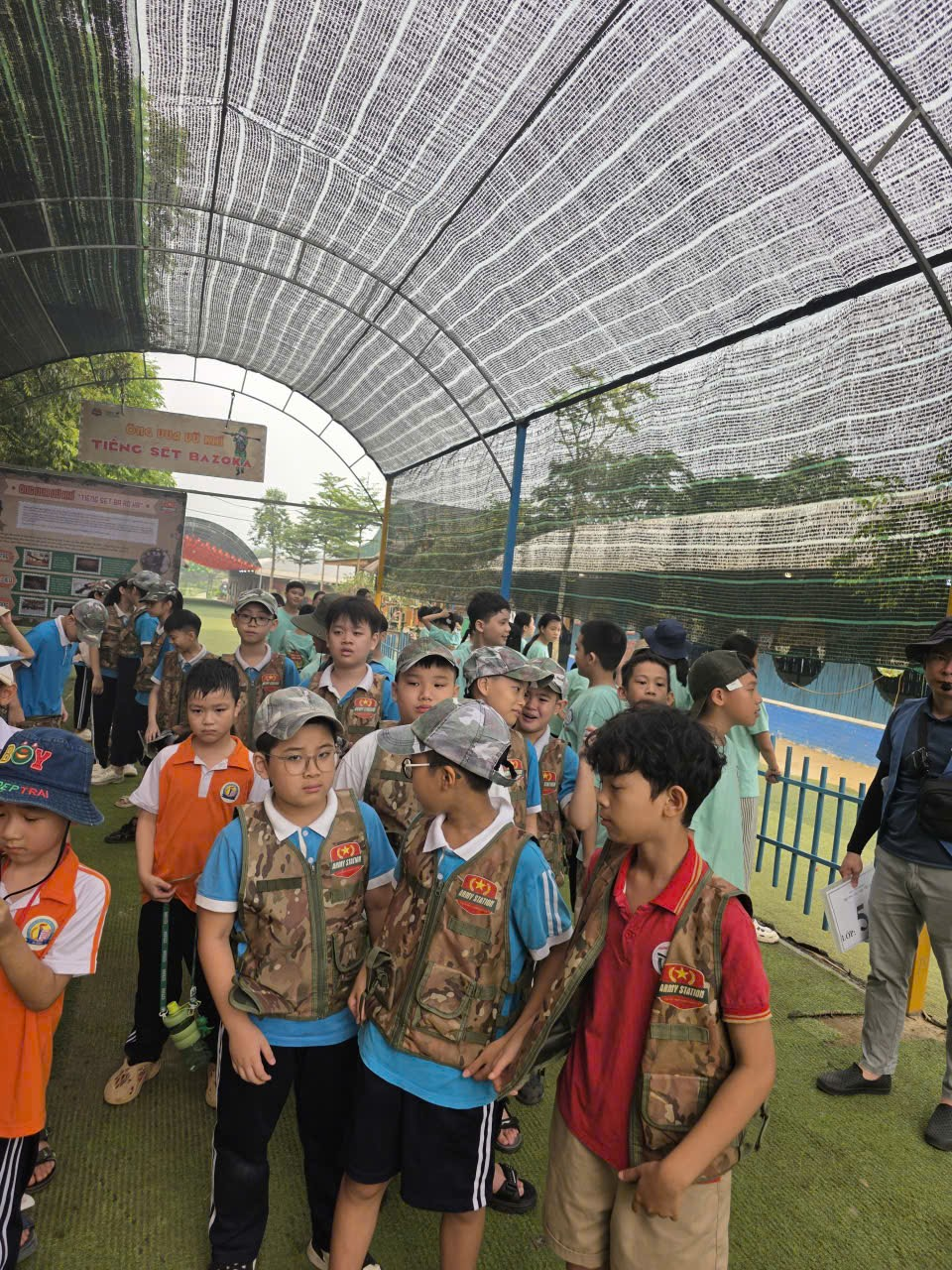 Các con tham gia các trò chơi trải nghiệm tại khu trang trại quân sự Army