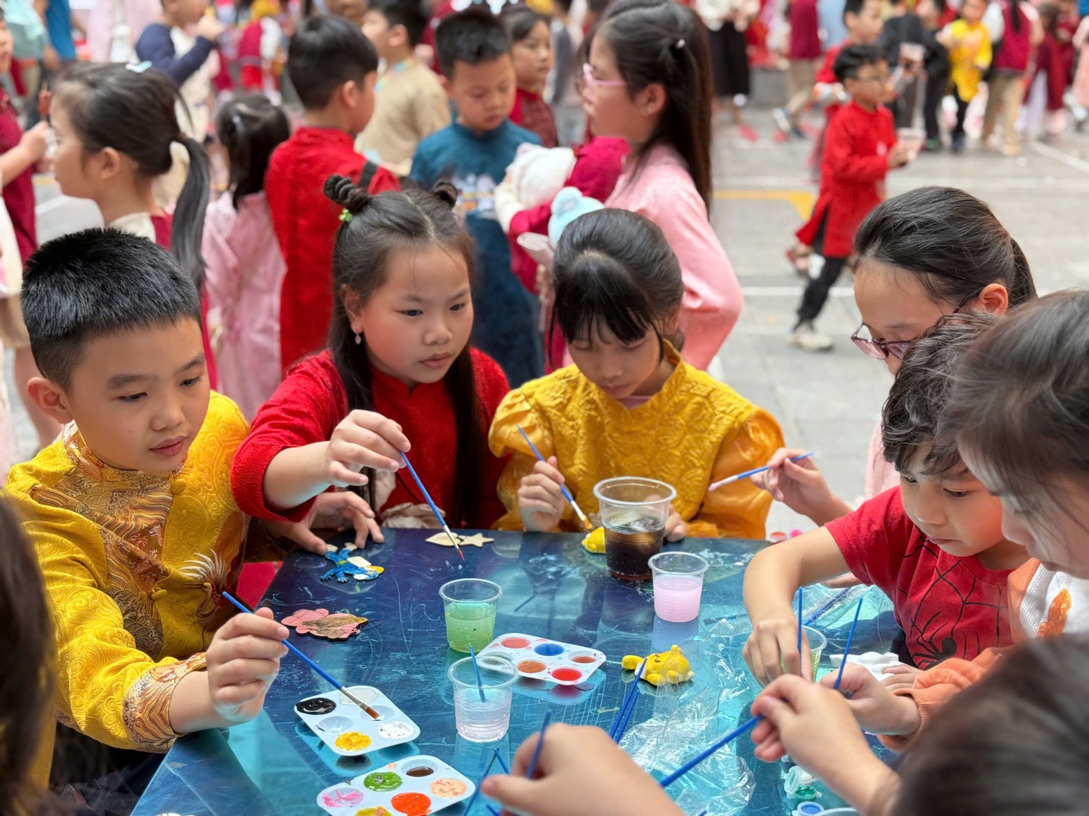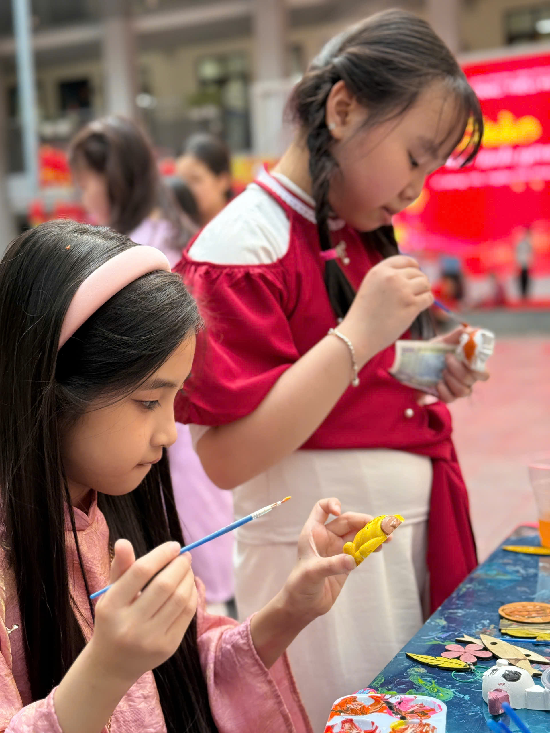 Không chỉ là nơi mua bán, gian hàng còn là “góc sáng tạo” giúp các em rèn sự khéo léo, thẩm mỹ, đồng thời nuôi dưỡng tình yêu với các hoạt động thủ công truyền thống. Sự hưởng ứng nhiệt tình của học sinh đã góp phần làm nên không khí sôi nổi, lan tỏa tinh thần trải nghiệm và văn hóa Việt trong ngày hội.