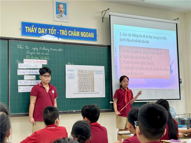 Tiết dạy Hội giảng môn Tiếng Việt – bài học “Sử dụng từ điển” của cô giáo Mai Phương thật bổ ích đối với học sinh lớp 5D. Tiết học đã rèn cho các con học sinh kĩ năng sử dụng từ điển để tra nghĩa của từ, biết cách dùng từ ngữ và đặt câu sao cho đúng. Đó cũng là một trong những việc làm hữu ích giúp các con trau dồi vốn từ để viết nên những câu văn hay, tạo nên bài viết giàu hình ảnh, nhiều cảm xúc.