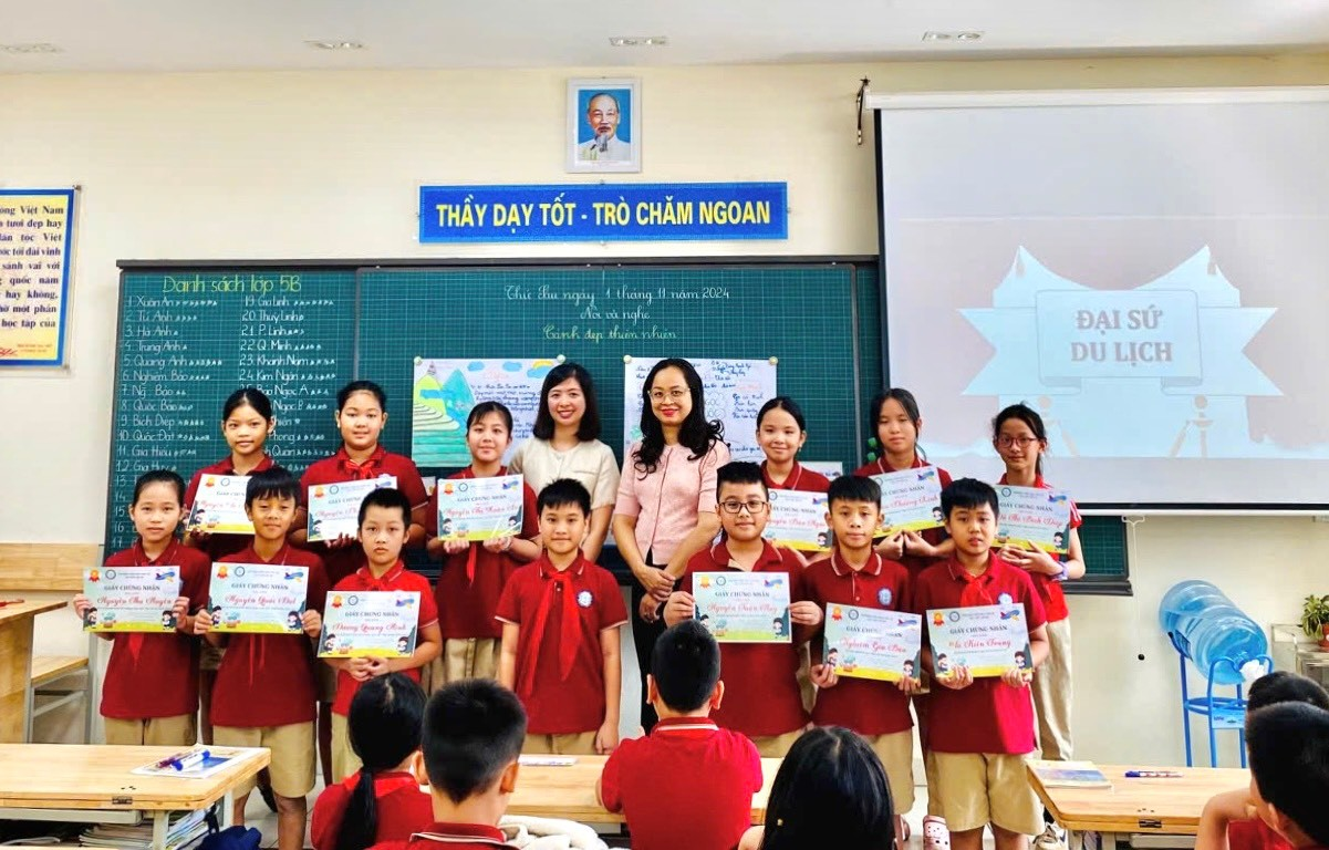 Cô giáo Phương Uyên và học sinh lớp 5B