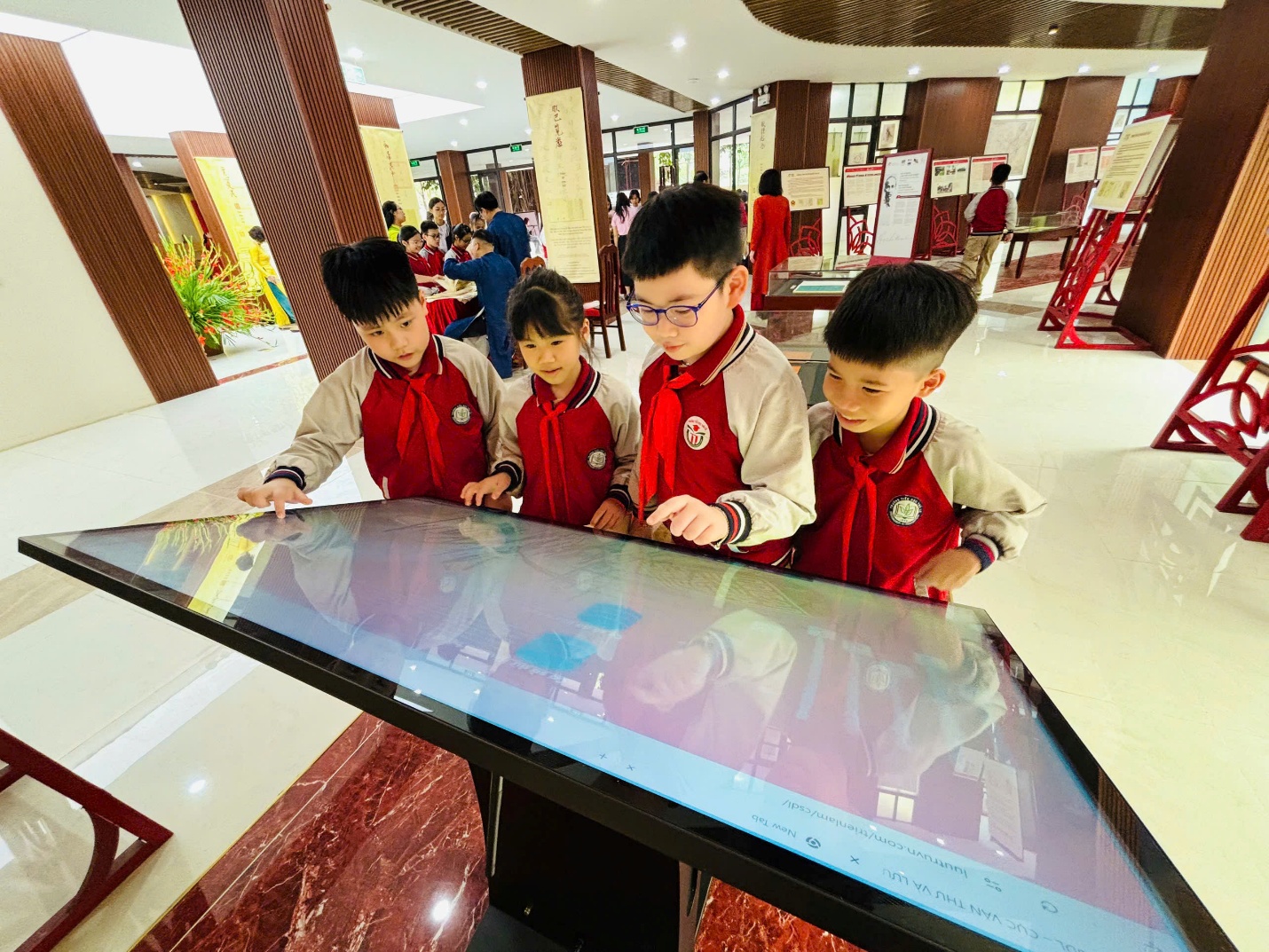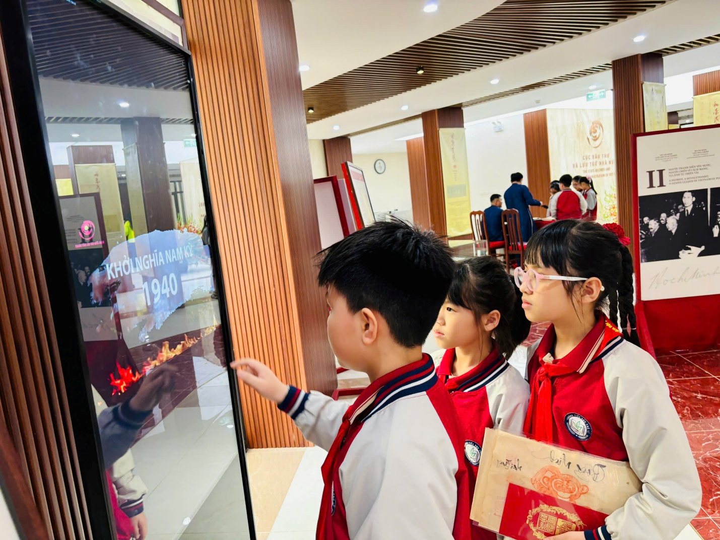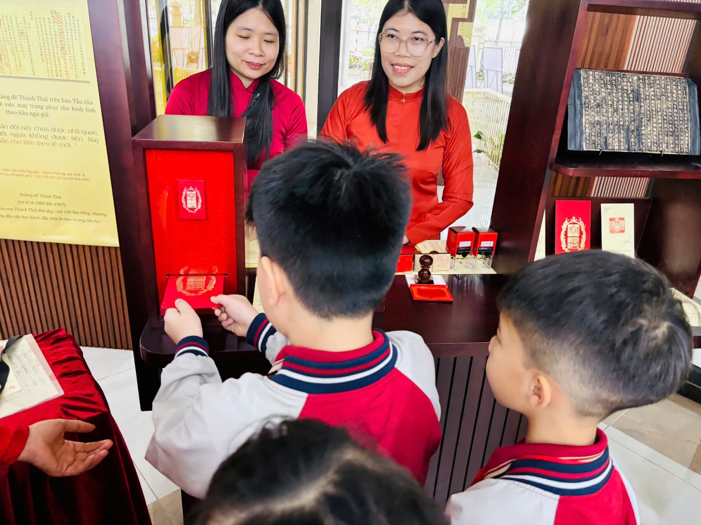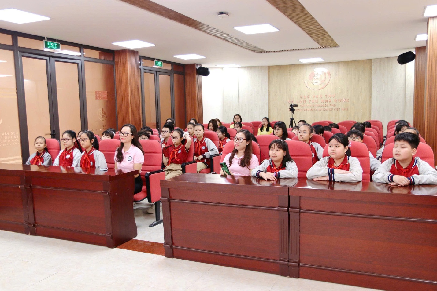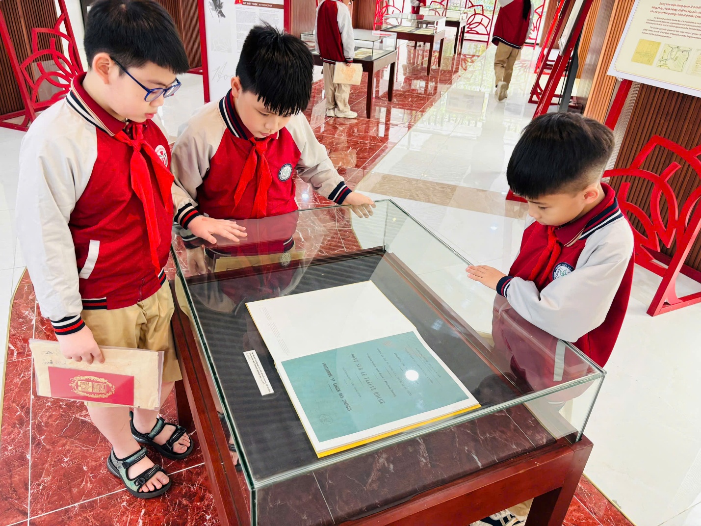 Đây cũng là cơ hội để các con học sinh lớp 4C được tham quan và chiêm ngưỡng những văn thư có giá trị về mặt lịch sử. Bên cạnh những văn thư bản gốc, các con còn được quan sát những văn thư, tư liệu lịch sử trên các thiết bị công nghệ hiện đại.