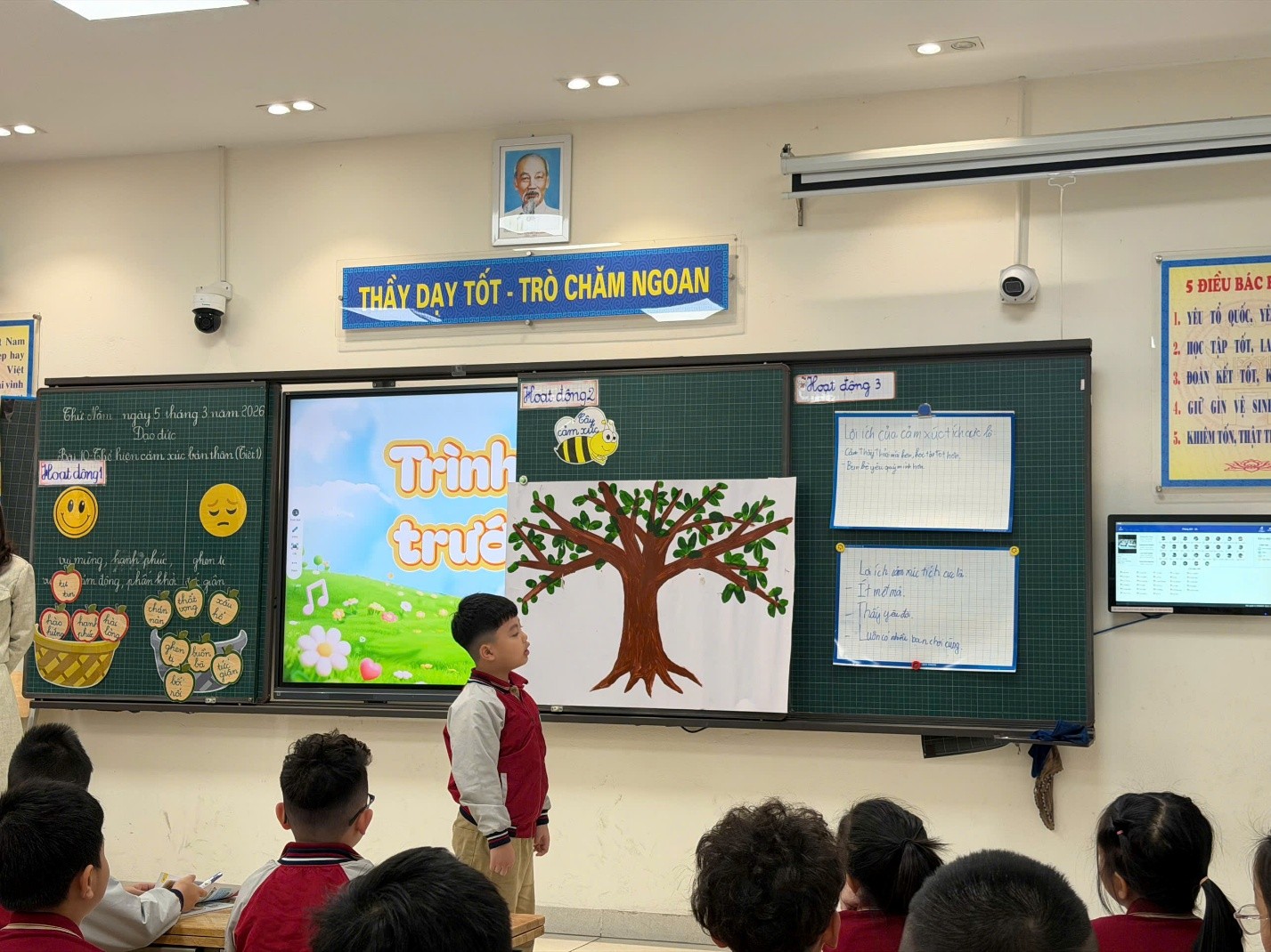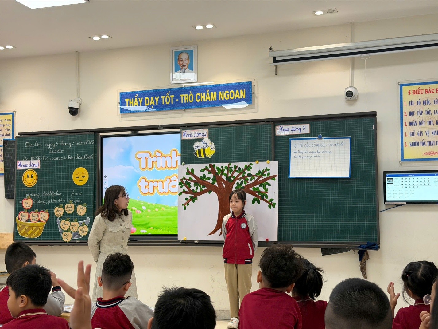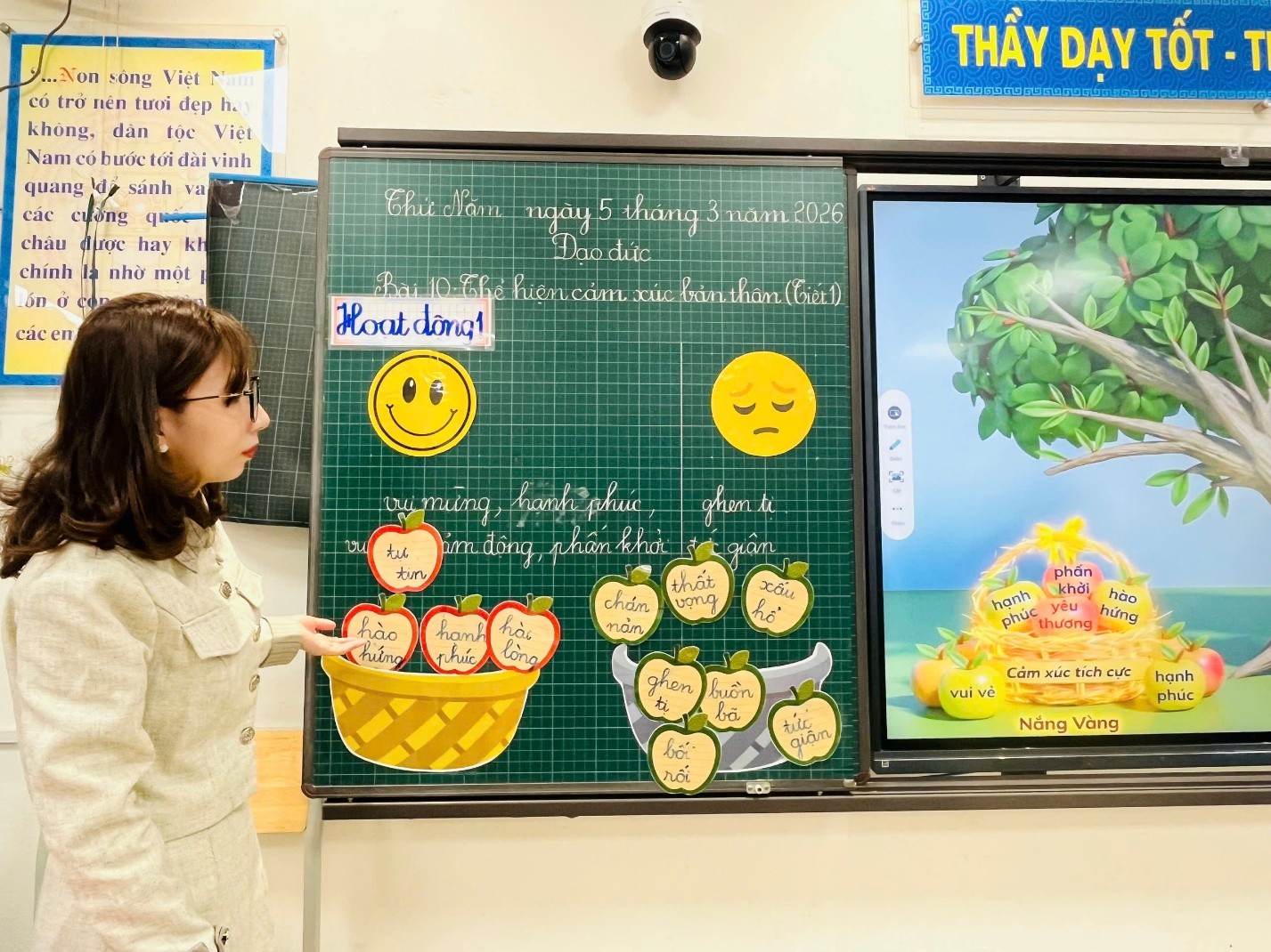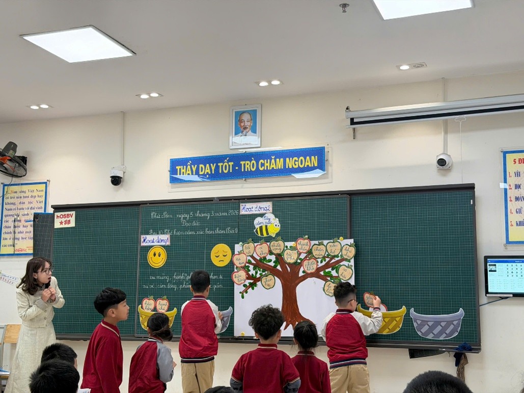Sáng ngày 05/03/2026, cô giáo Nguyễn Thanh Nga đã thực hiện thành công tiết Hội giảng môn Đạo đức lớp 2A với bài học: “Thể hiện cảm xúc bản thân”. Tiết học không chỉ mang đến kiến thức bổ ích mà còn tạo ra một không gian học tập đầy cảm xúc, vui tươi và sáng tạo cho học sinh.
